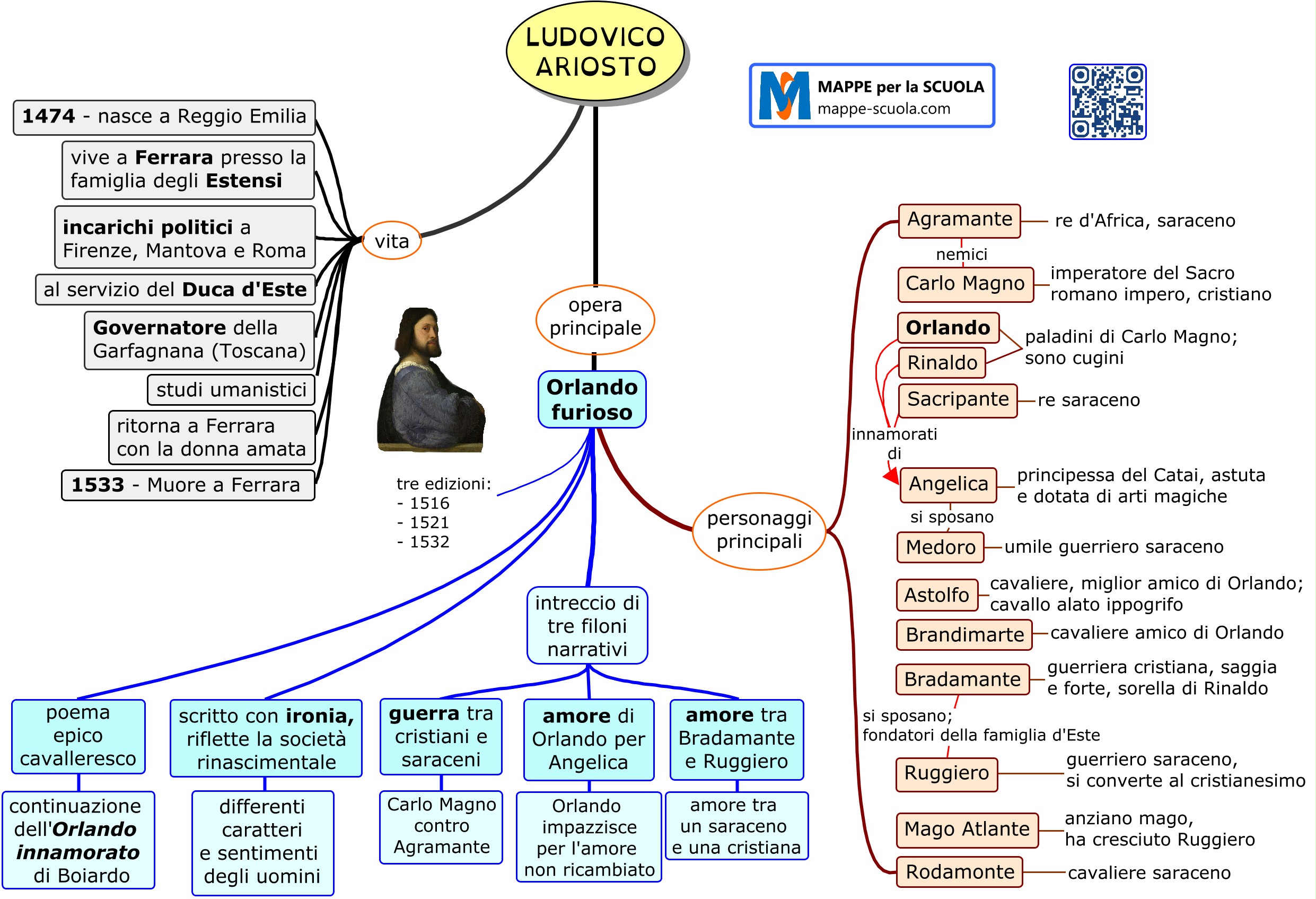 Mappa concettuale su Ludovico Ariosto e sull'Orlando furioso.