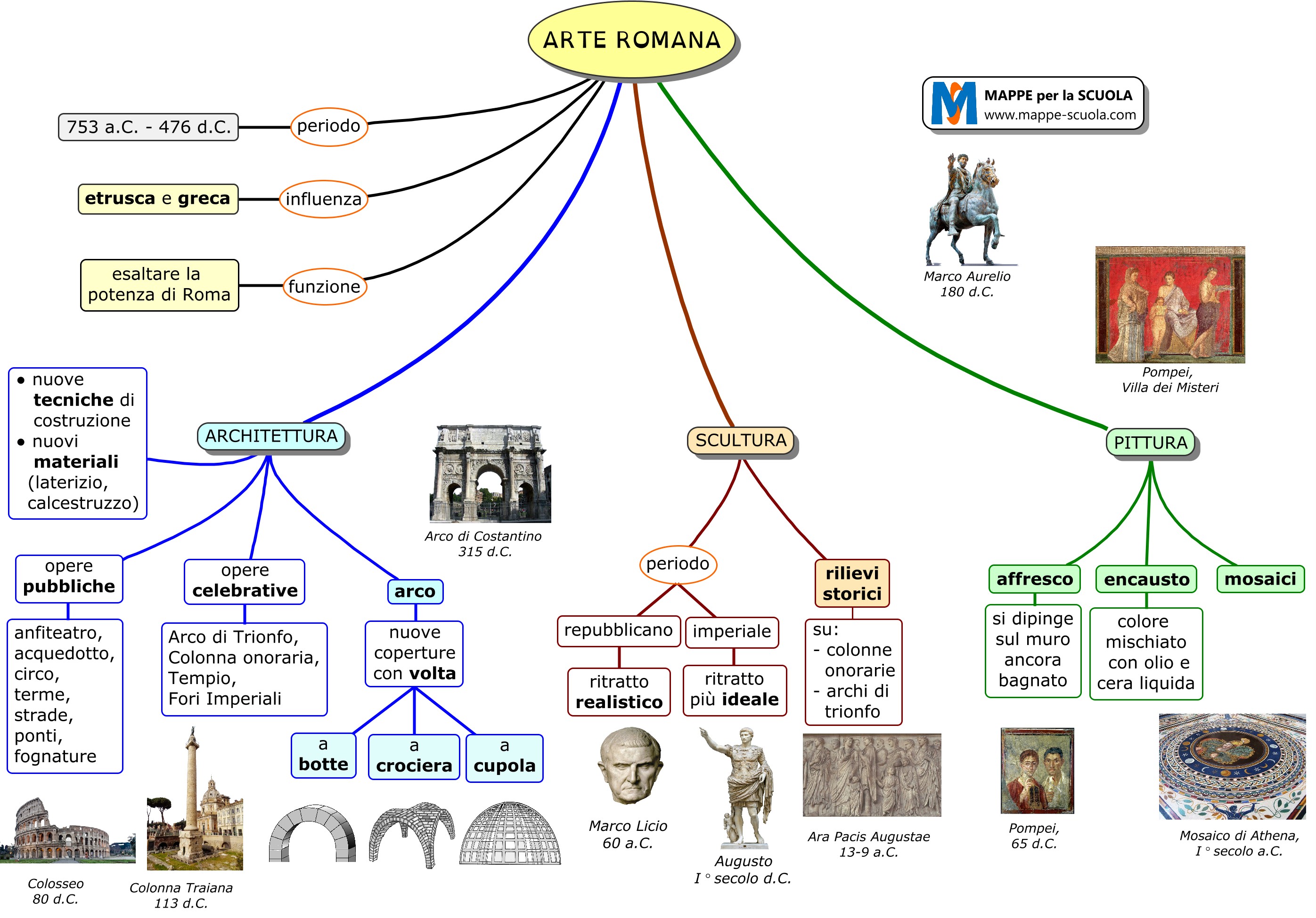 Mappa concettuale sull'arte romana (Arte, scuola secondaria).