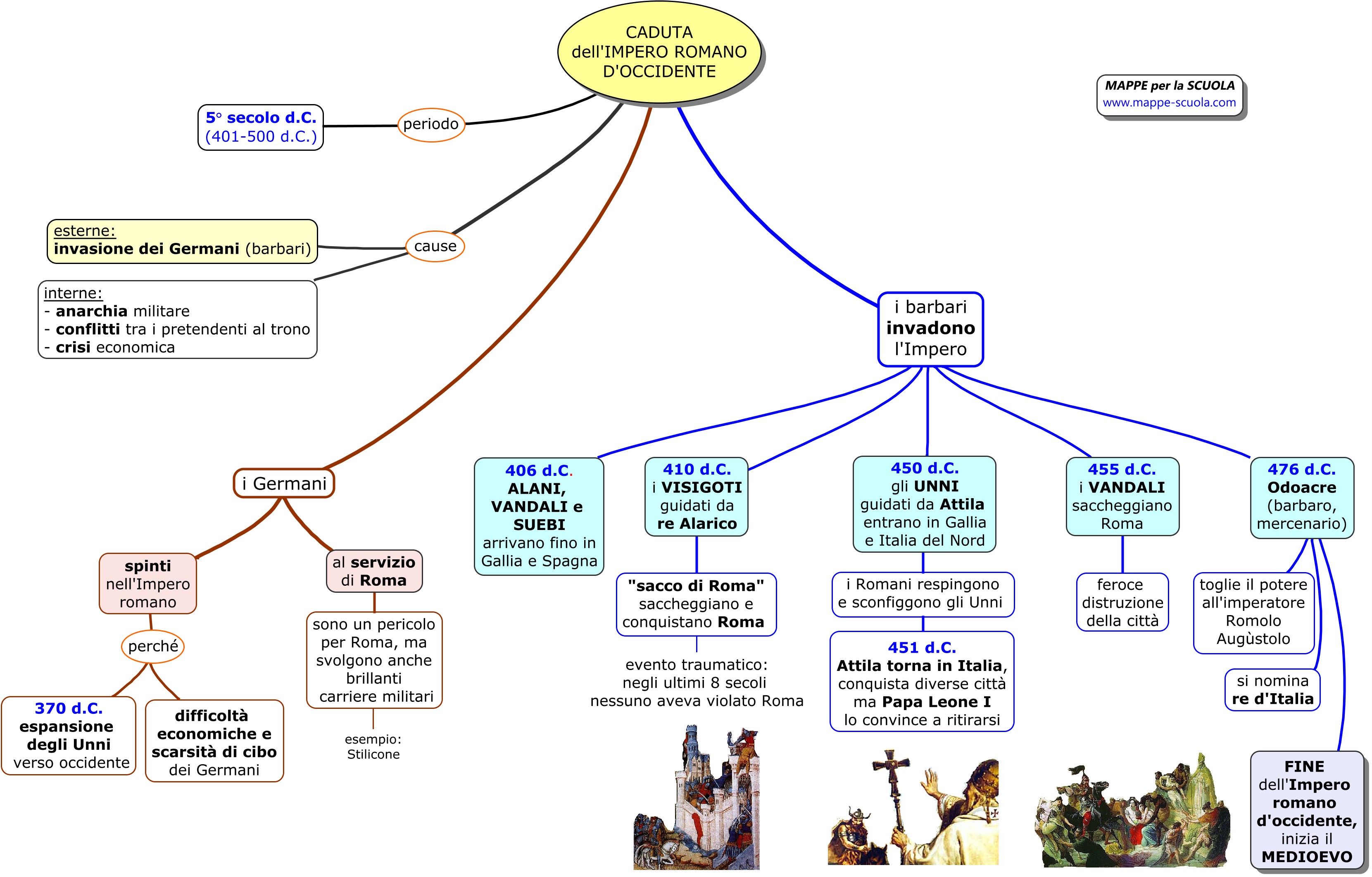Mappa concettuale sulla CADUTA DELL'IMPERO ROMANO D'OCCIDENTE.