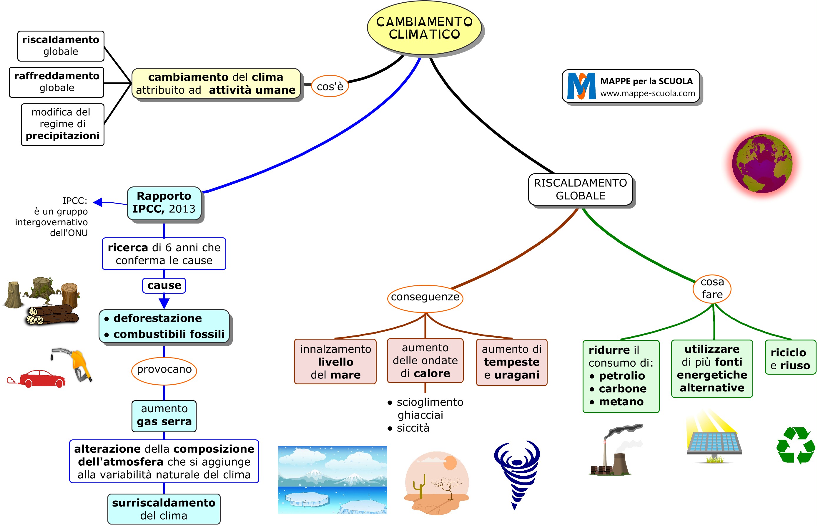 Mappa concettuale sul Cambiamento climatico (Geografia, Educazione civica).