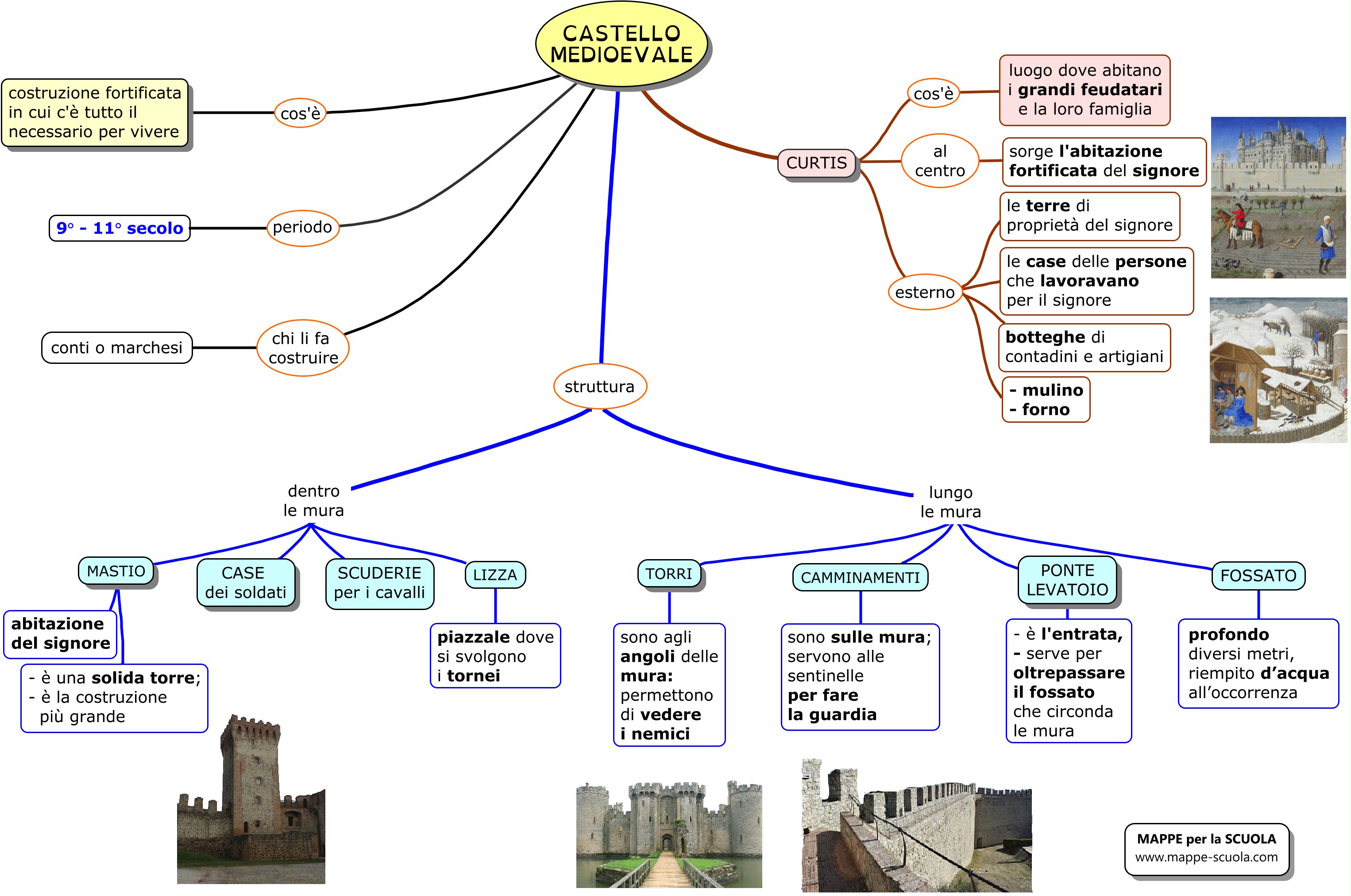 Mappa concettuale sul CASTELLO MEDIOEVALE.La costruzione dei castelli (incastellamento) cominciò nel medioevo tra il IX e il XI secolo in tutta Europa. Il castello veniva costruito su di un'altura...