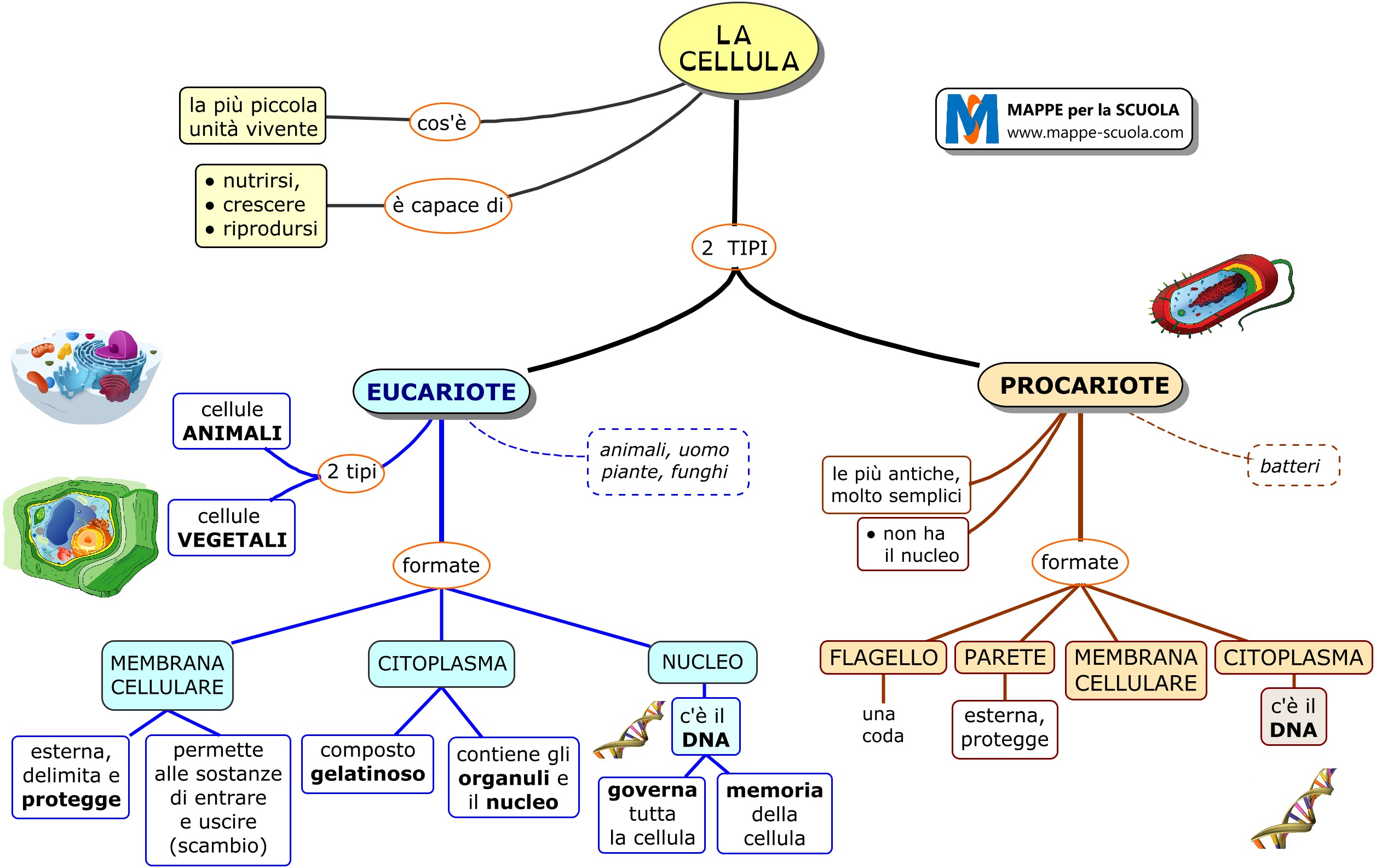 Mappa concettuale sulla CELLULA (Mappa n.1 - semplificata)La cellula è formata dalla membrana cellulare, il citoplasma e il nucleo. Ci sono due tipi di cellule: la cellula eucariote e cellule procariote...