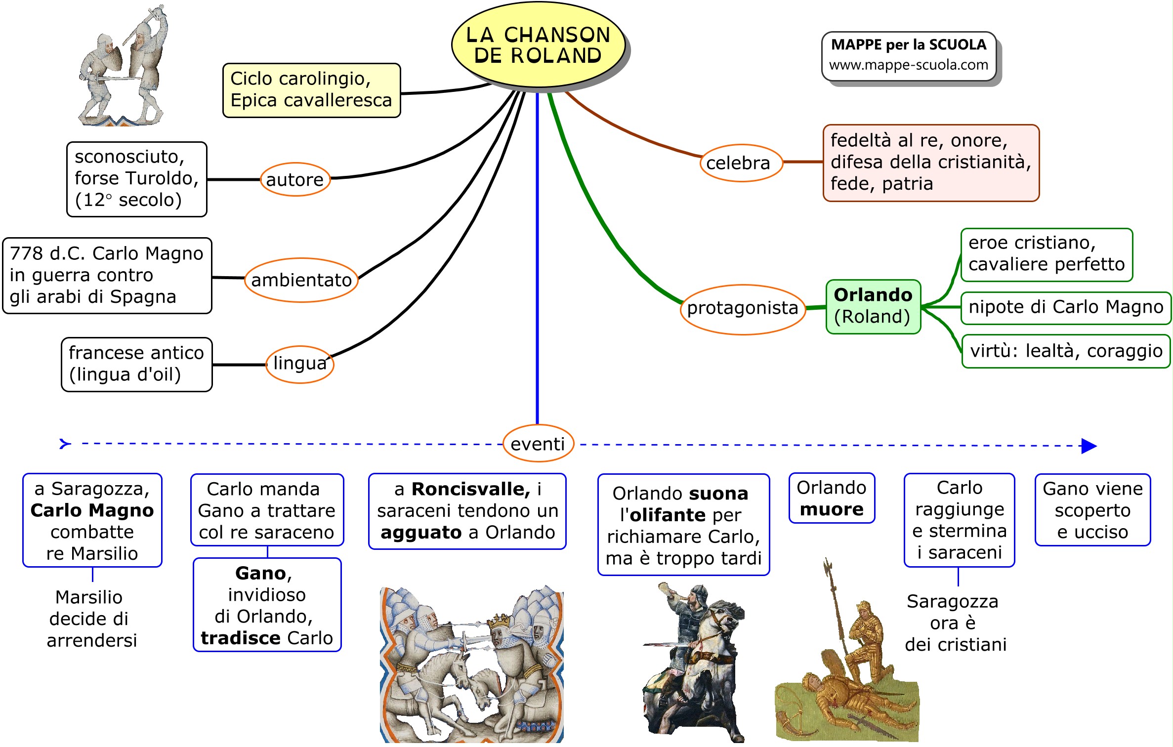 Mappa concettuale sulla Chanson de Roland (Epica cavalleresca, scuola secondaria).