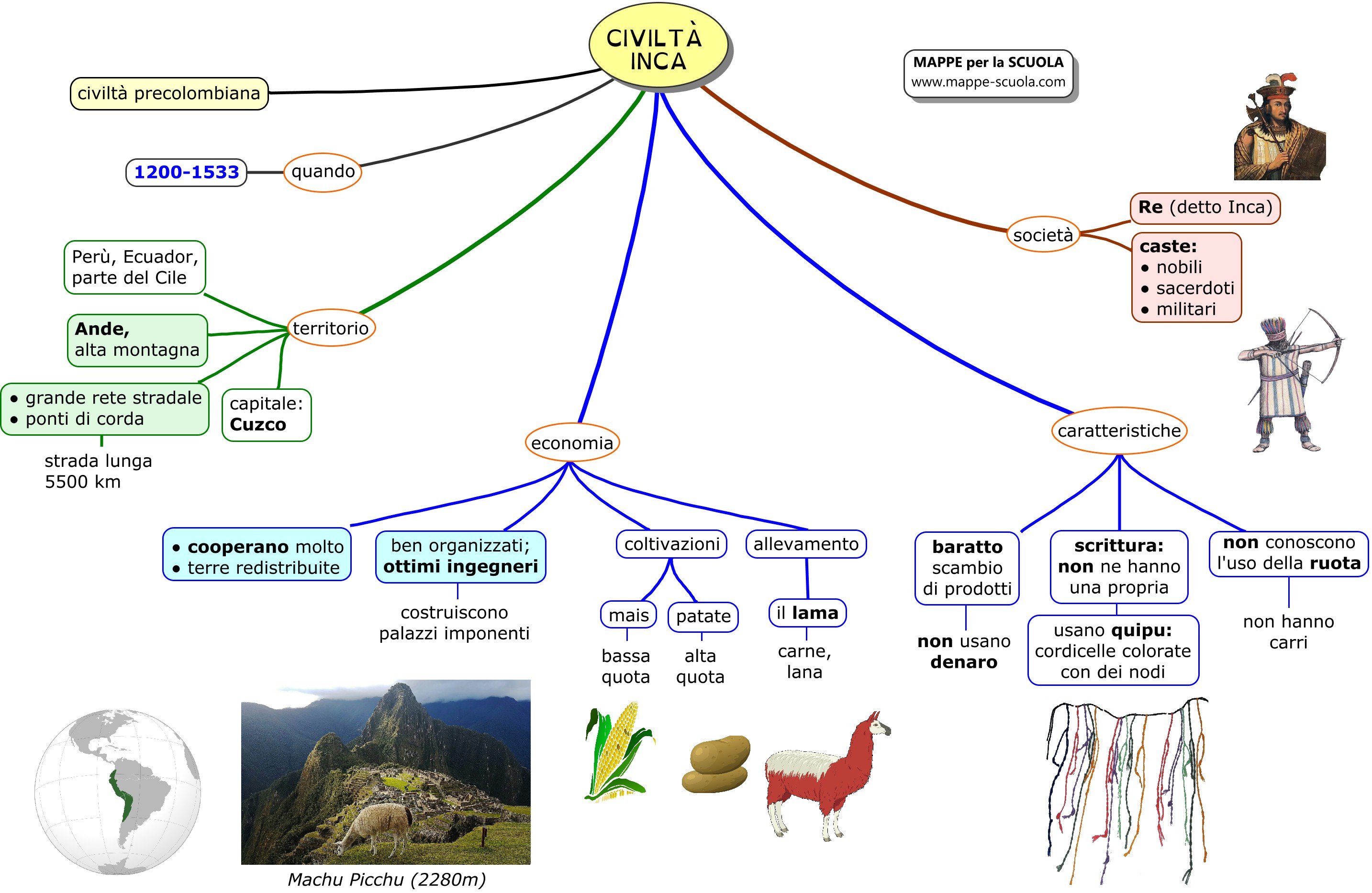 La civiltà Inca è una civiltà precolombiana. Gli inca abitavano sulla catena delle Ande. L'impero Inca aveva come capitale la città di Cuzco. Famoso è Machu Picchu...