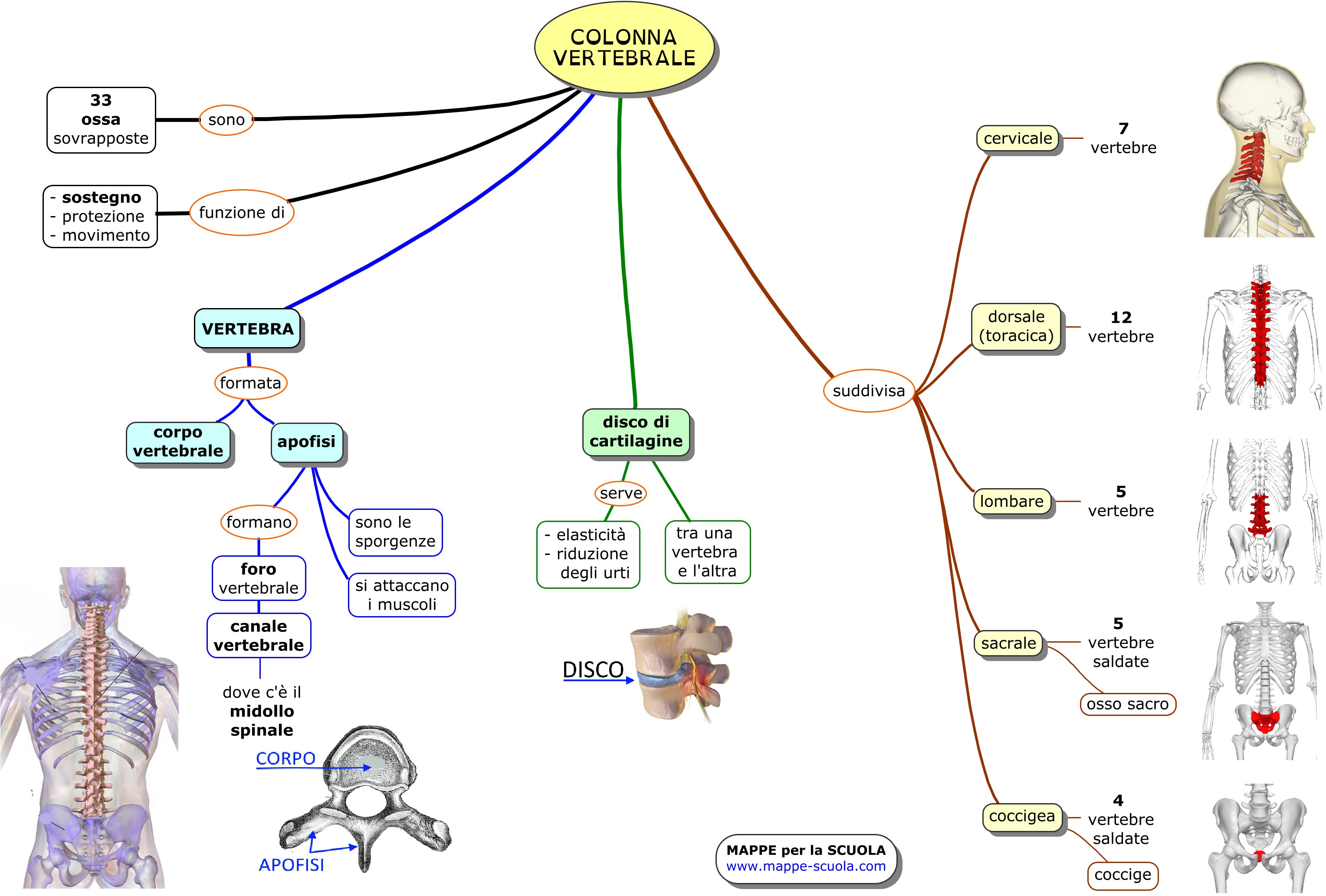 Mappa concettuale sulla colonna vertebrale (scienze, Il corpo umano).