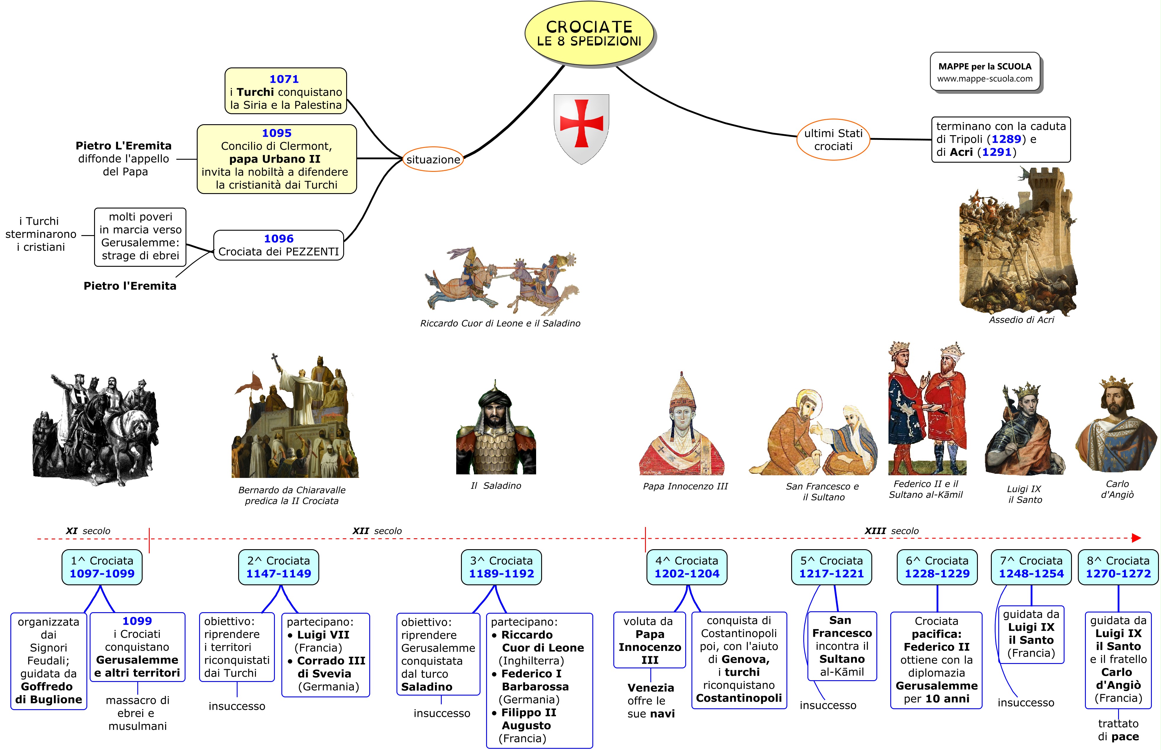 Mappa concettuale sulle otto Crociate.XI - XIII secolo