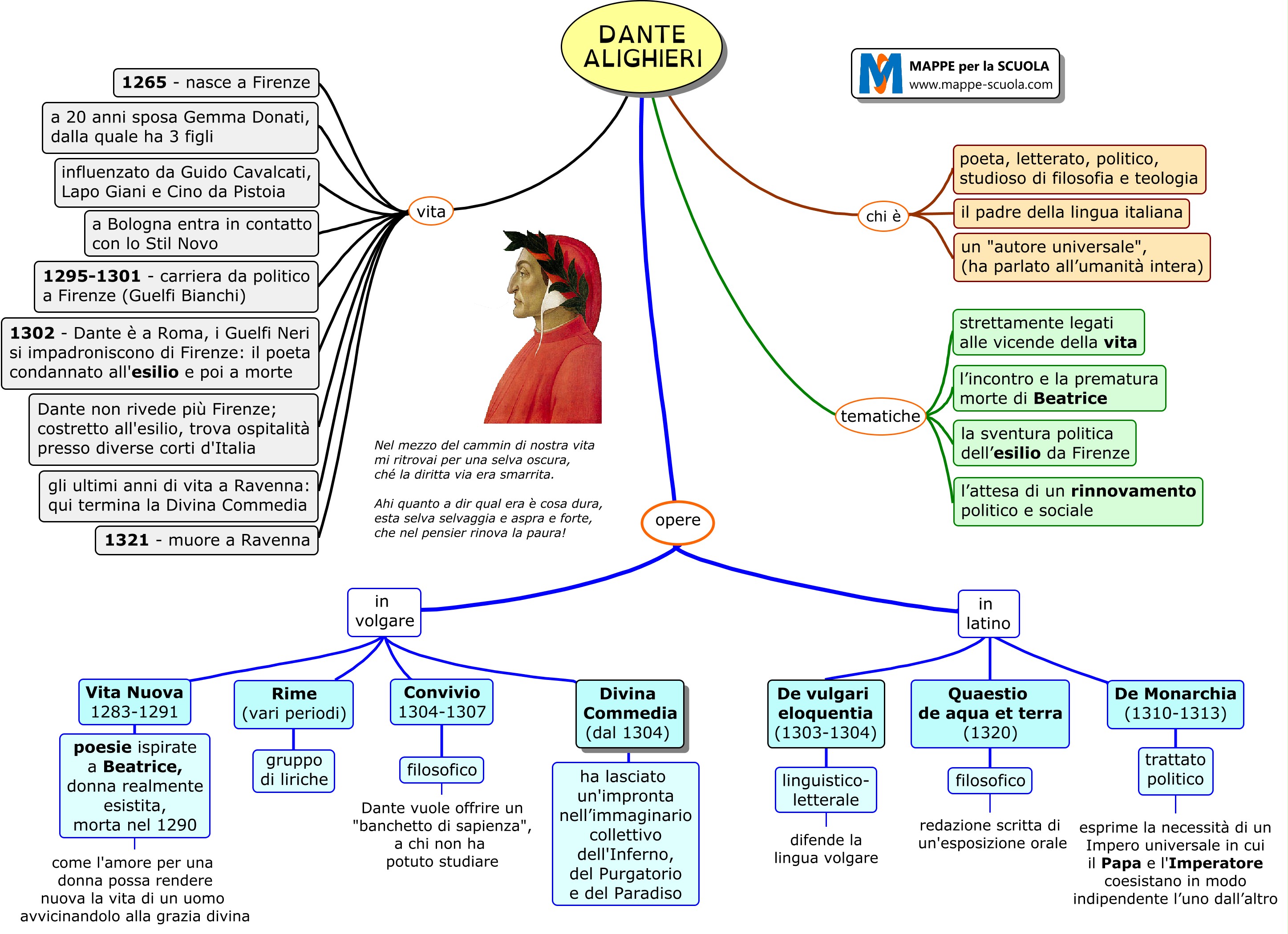 Mappa concettuale su DANTE ALIGHIERI.