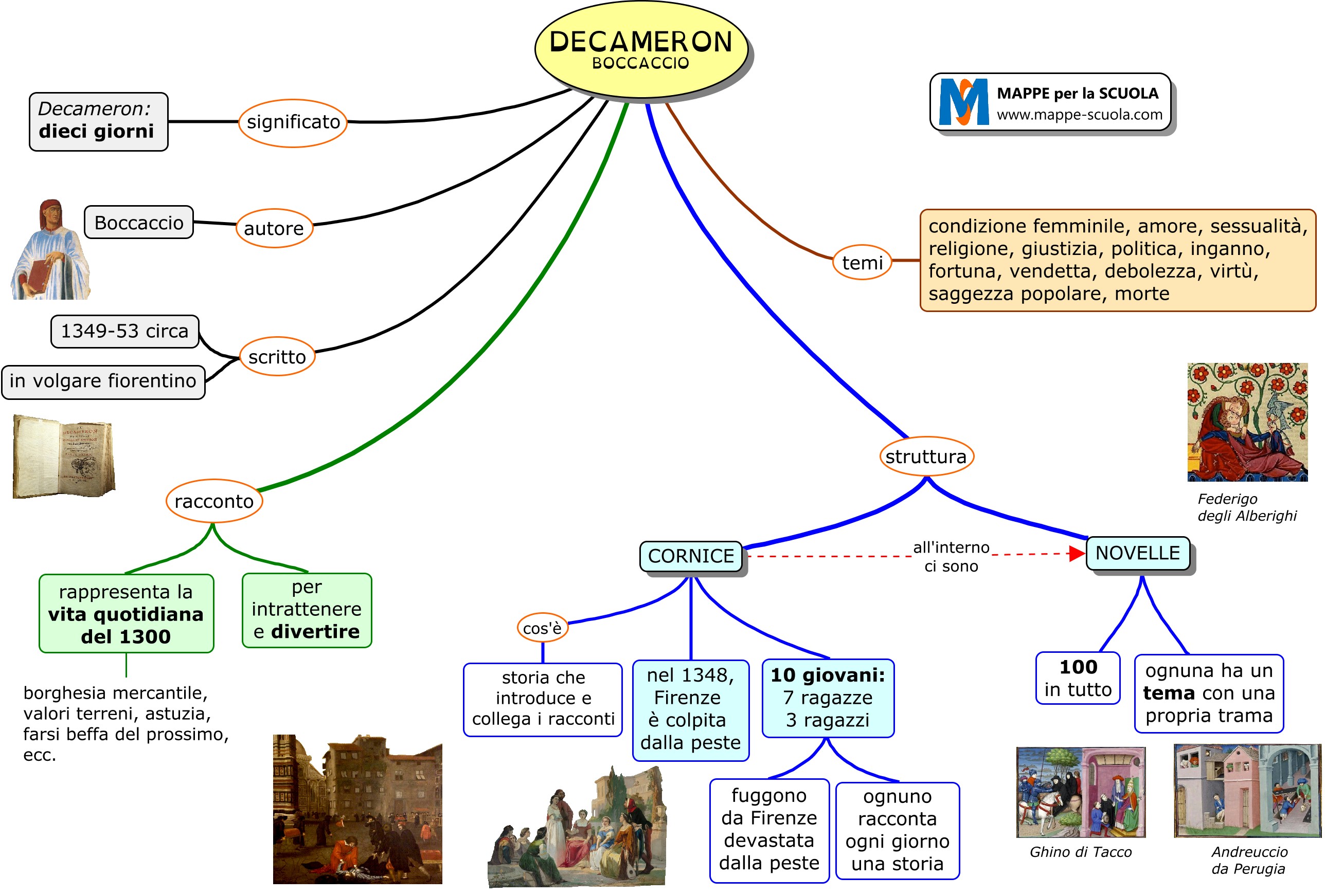 Mappa concettuale sul Decameron di Giovanni Boccaccio (letteratura).