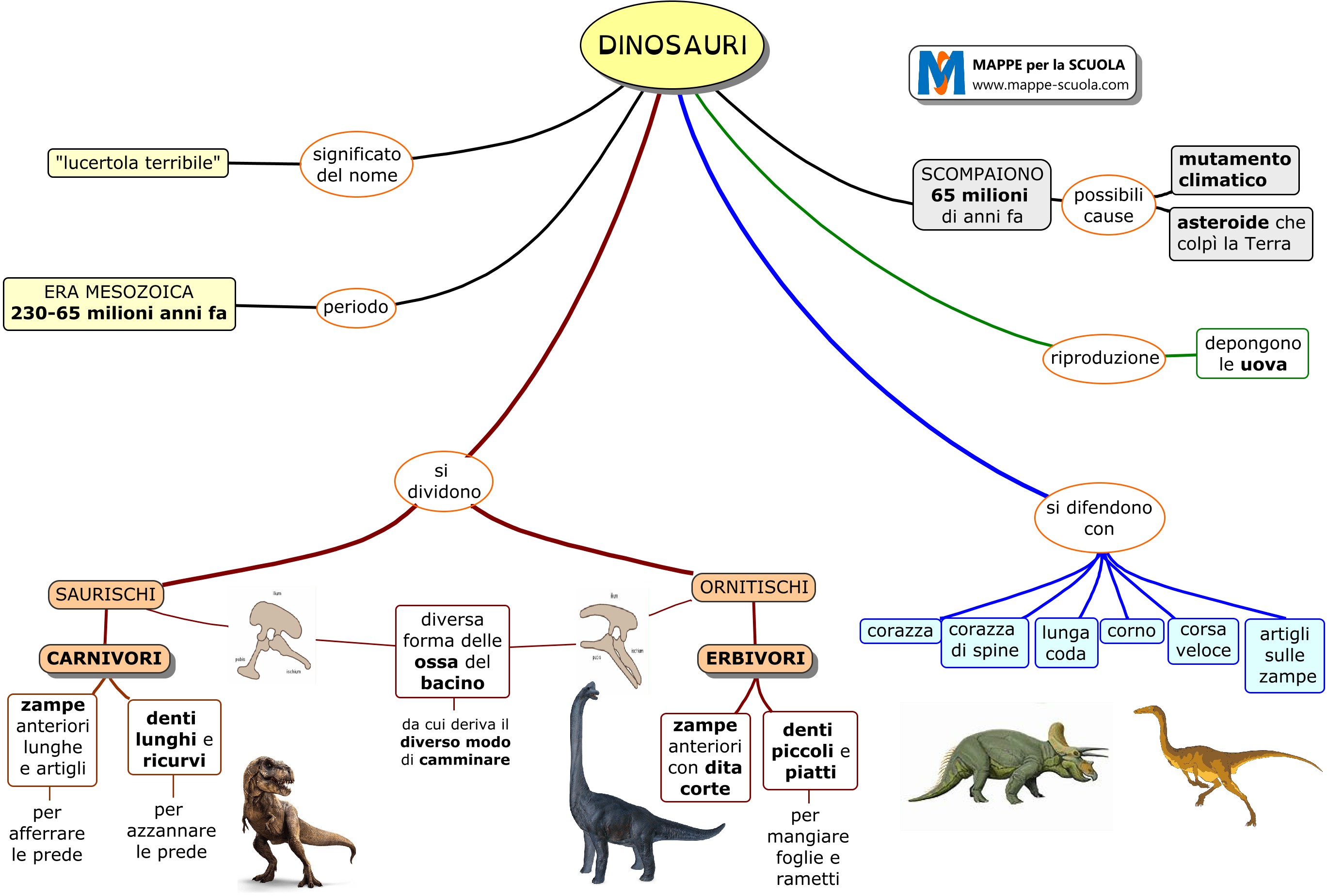 Mappa concettuale sui DINOSAURI (storia, scuola primaria).
