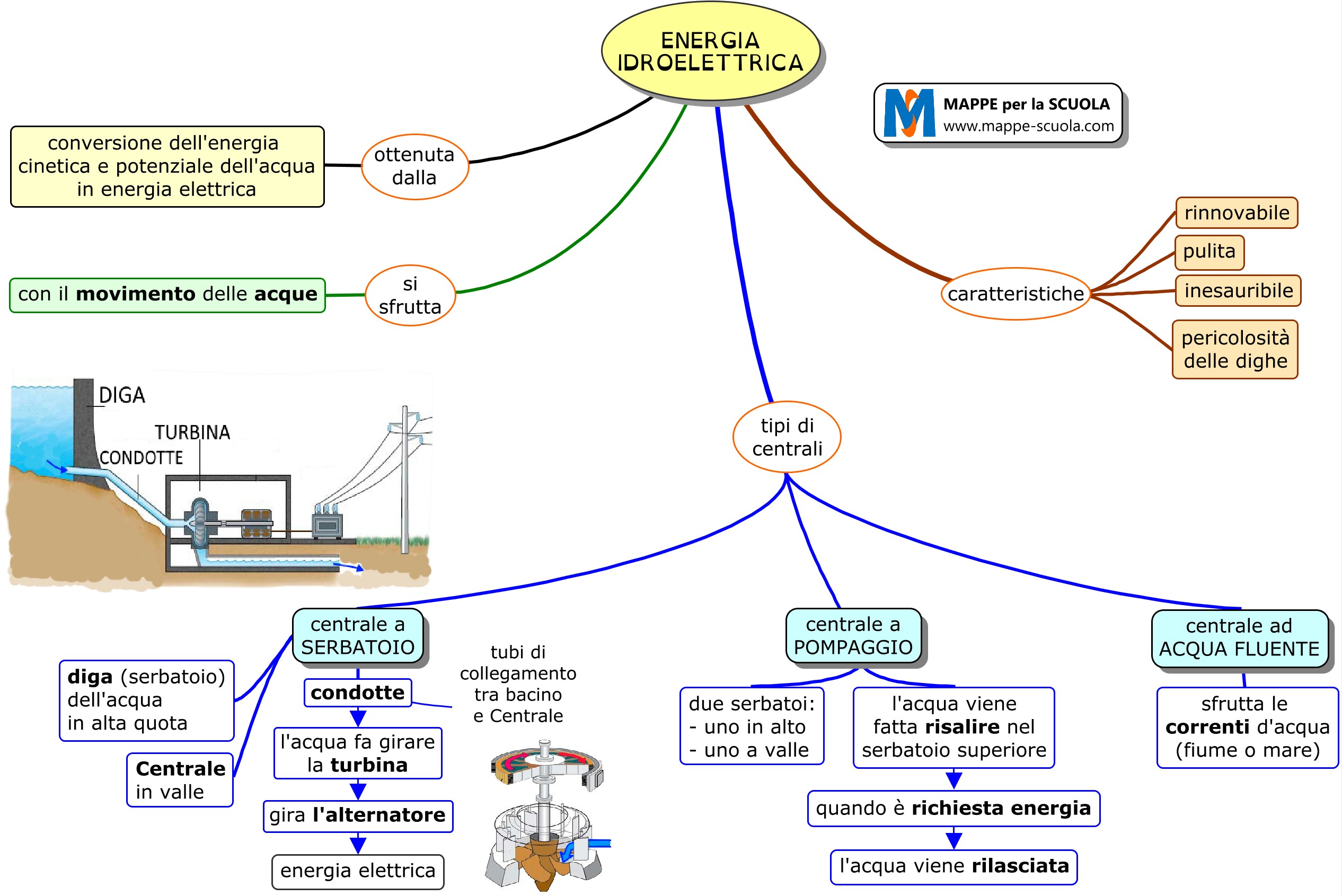 Mappa concettuale sull'ENERGIA IDROELETTRICA (Tecnologia; terza media)