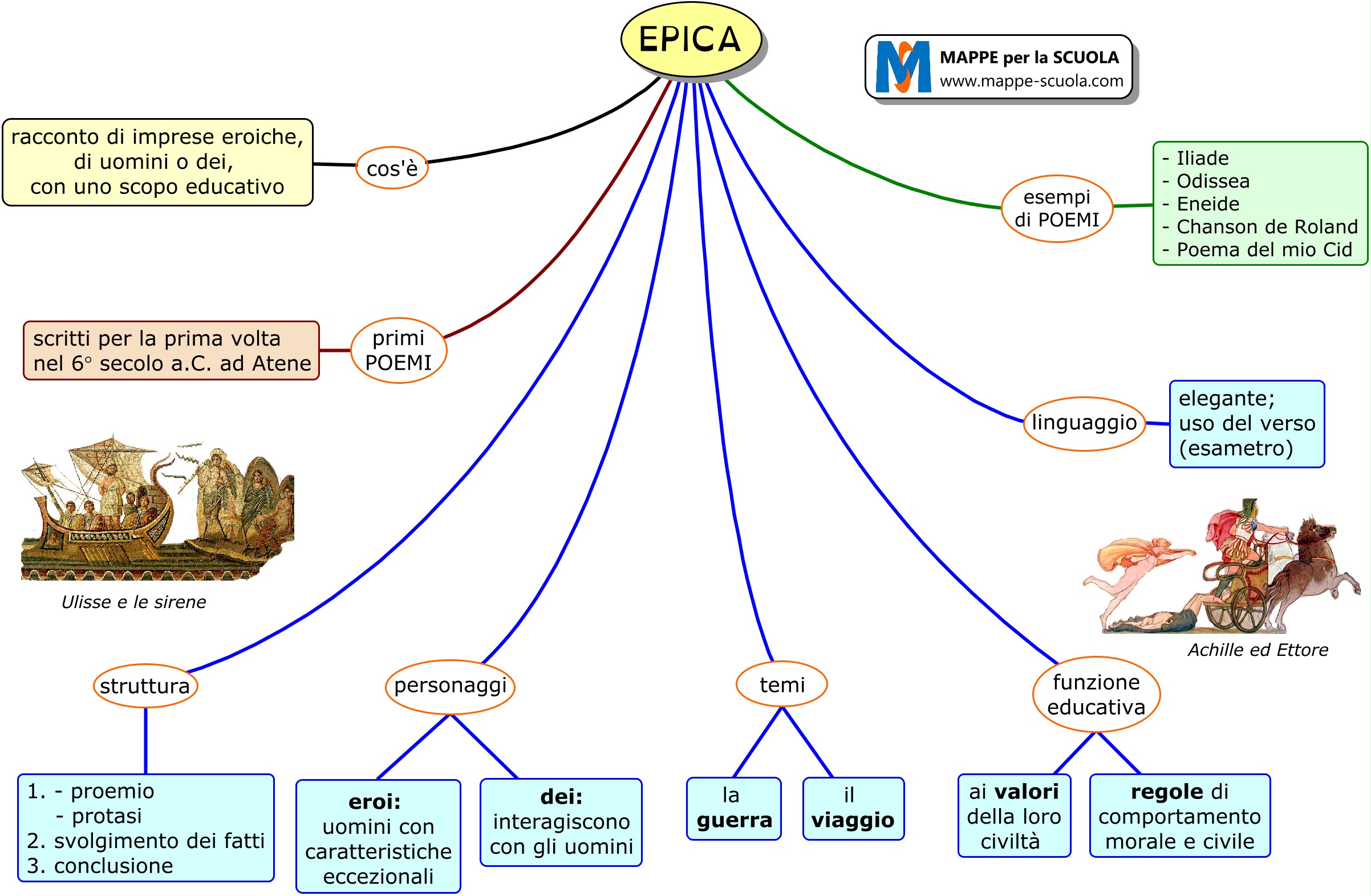 Mappa concettuale sull'Epica (Italiano, scuola media).