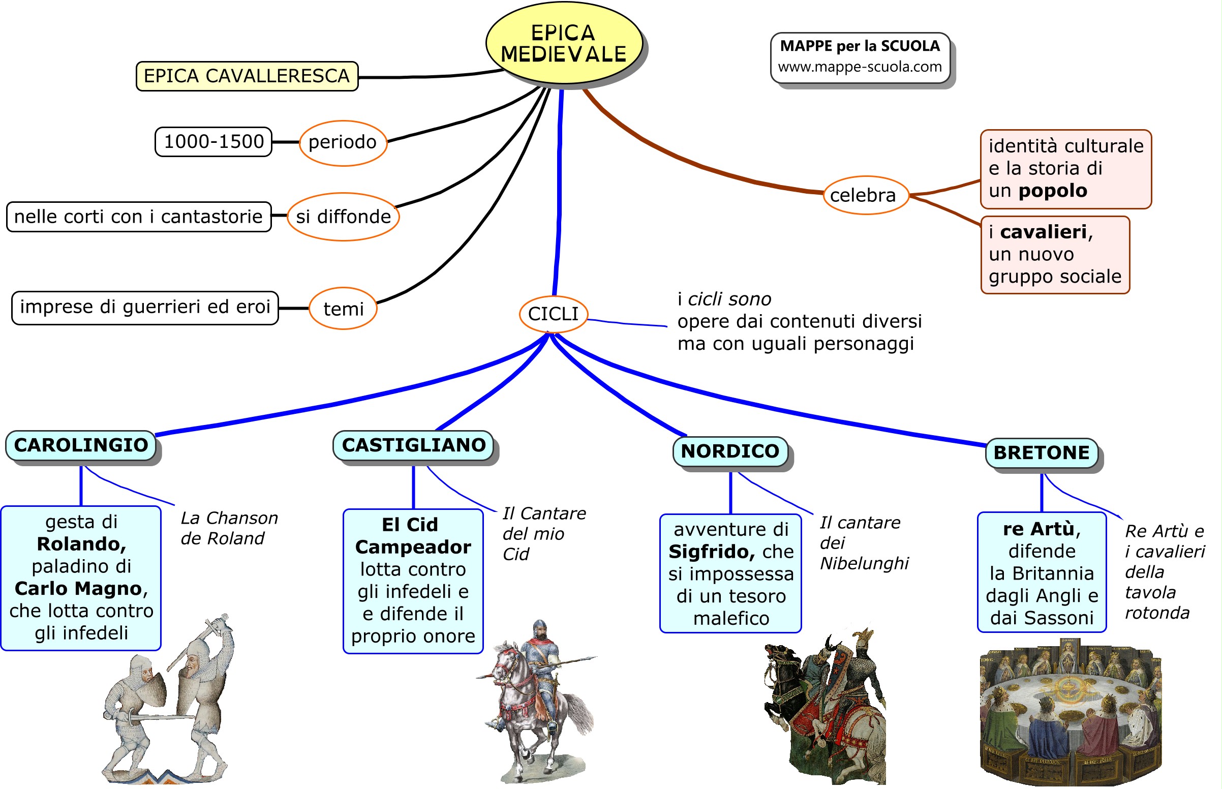 Mappa concettuale sull'Epica medievale (poema cavalleresco).