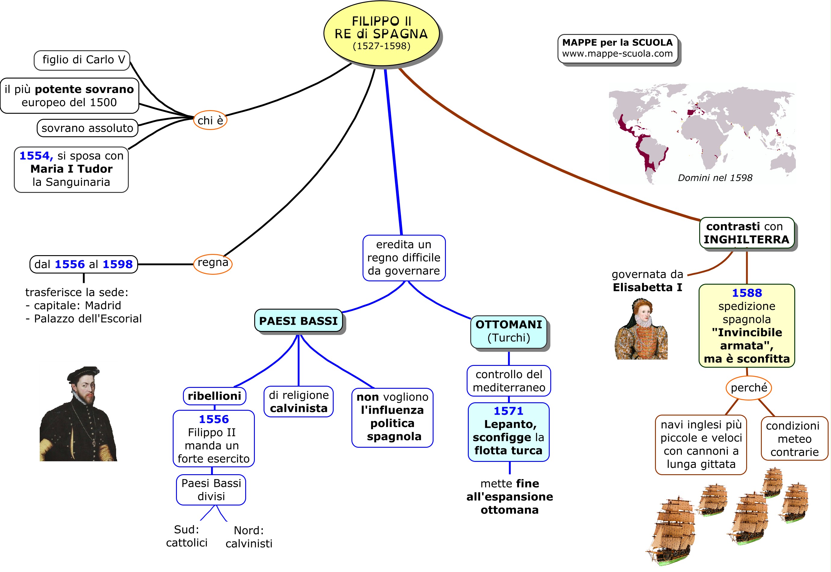 Mappa concettuale su FILIPPO II RE di SPAGNA.