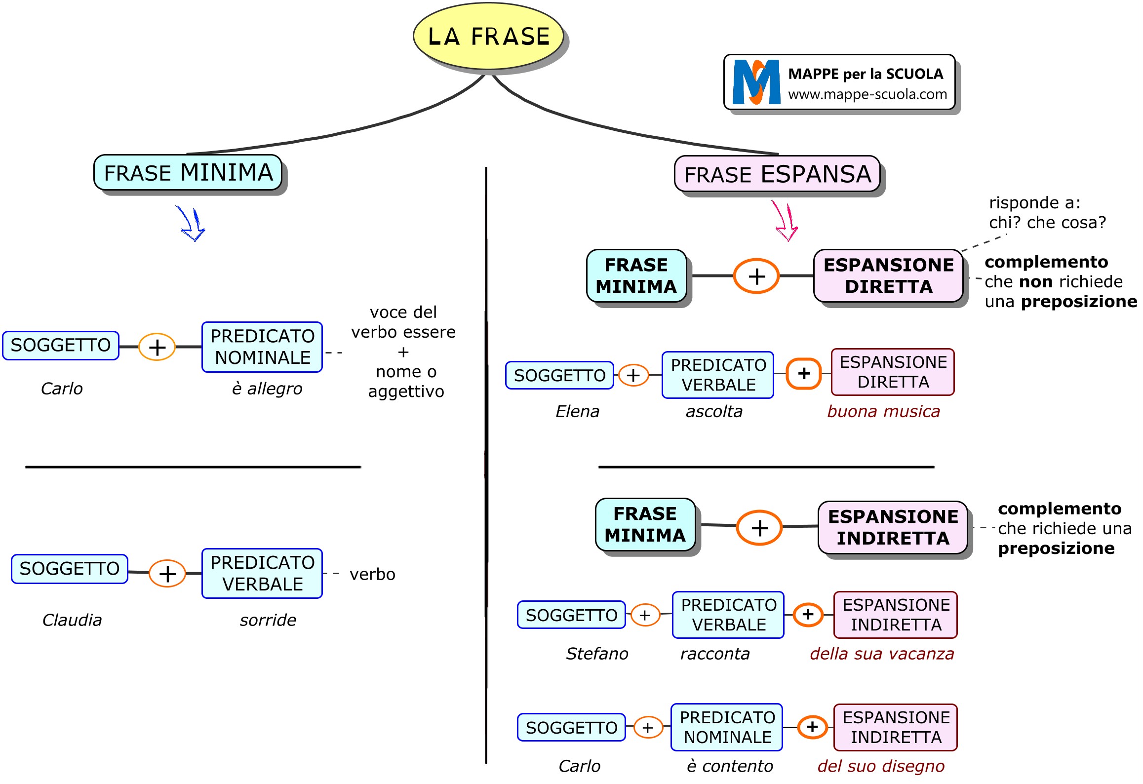 Schema sulla FRASE MINIMA e sulla FRASE ESPANSAFrase minima: soggetto + predicato. Frase espansa: soggetto + predicato + complemento...