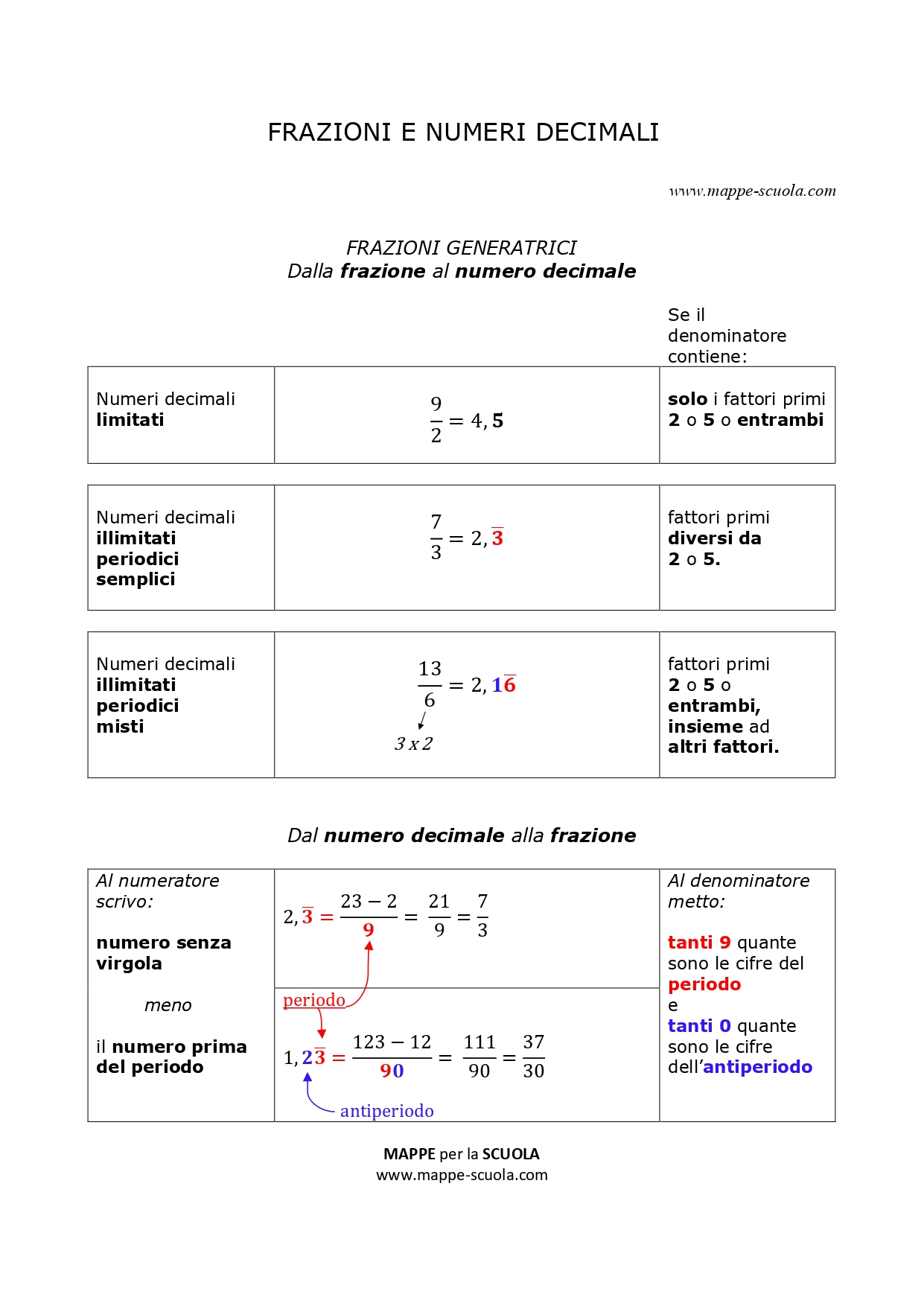 Da una frazione si possono generare: numero decimale limitato, numero decimale illimitato periodico semplice e numero decimale illimitato periodico misto.