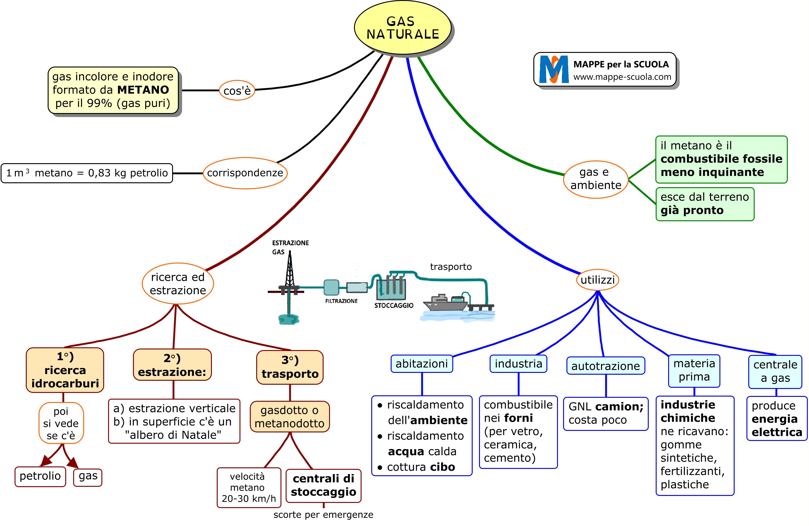 Mappa concettuale sul GAS METANO (Tecnologia, Terza media).Il metano è tra i combustibili fossili il meno inquinante...