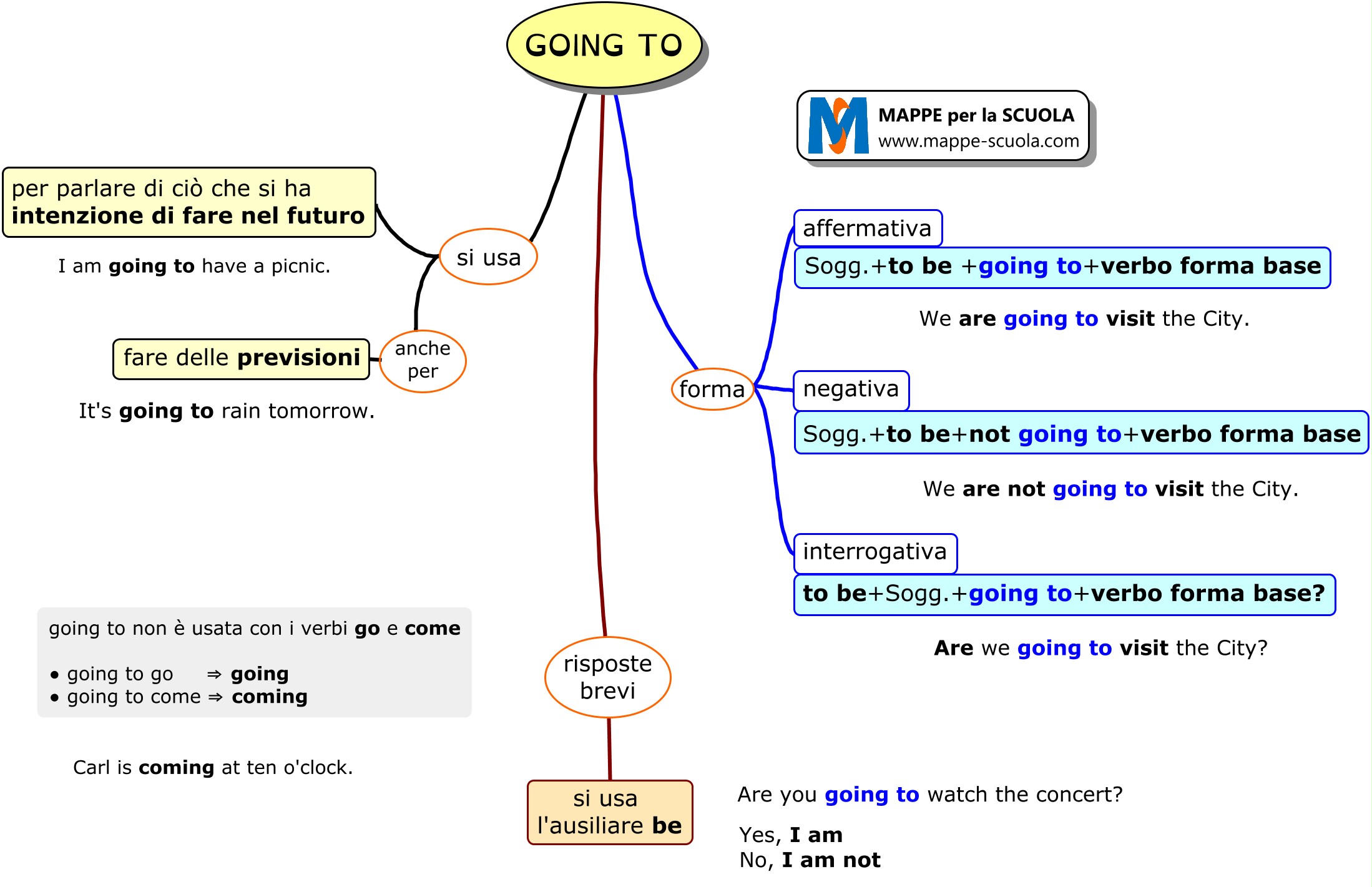 Mappa concettuale sull'uso del GOING TO (inglese).