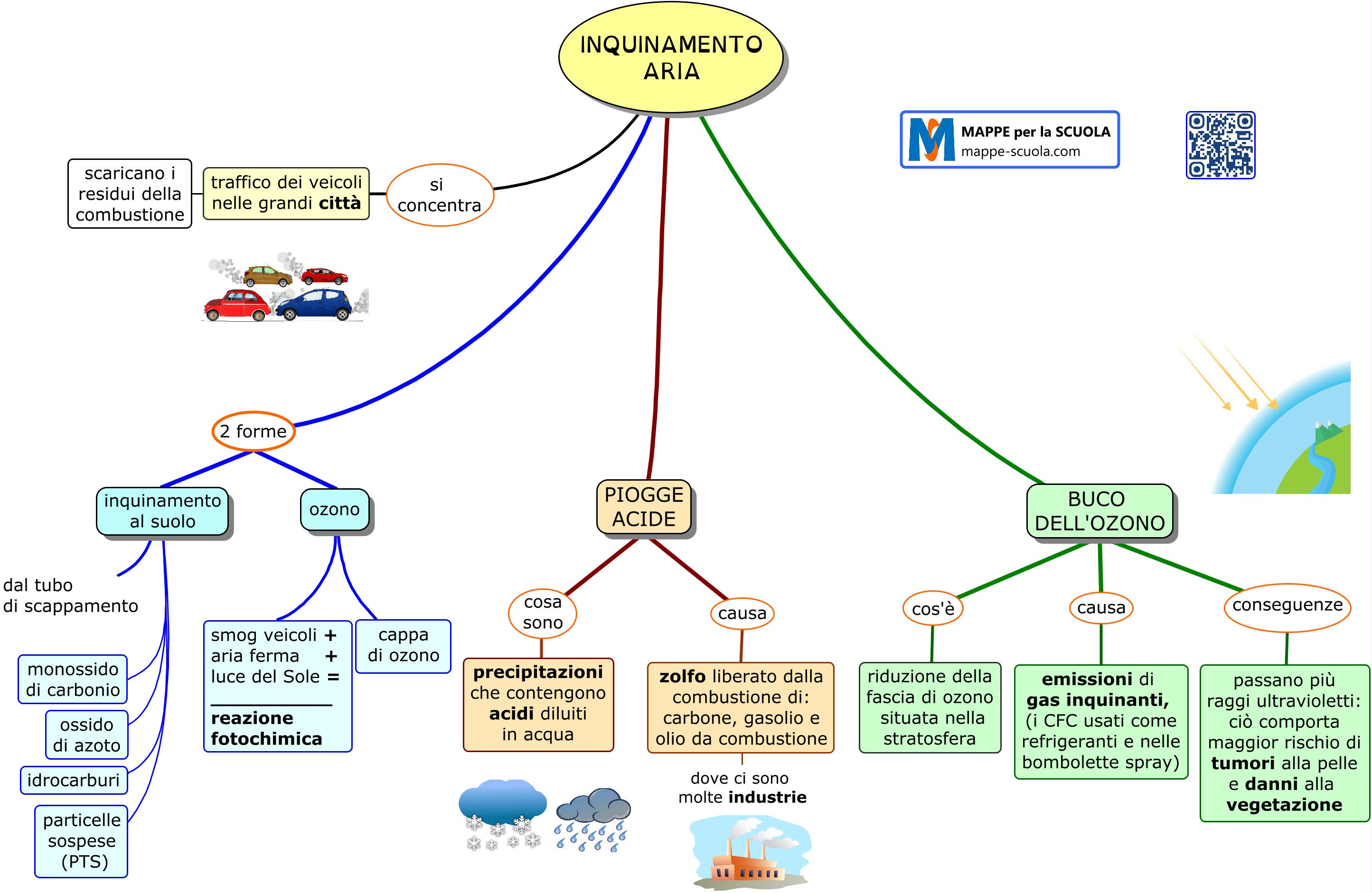 Mappa concettuale sull'INQUINAMENTO DELL'ARIA (tecnologia, geografia). Inquinamento dell'aria: buco dell'ozono, piogge acide, ecc.