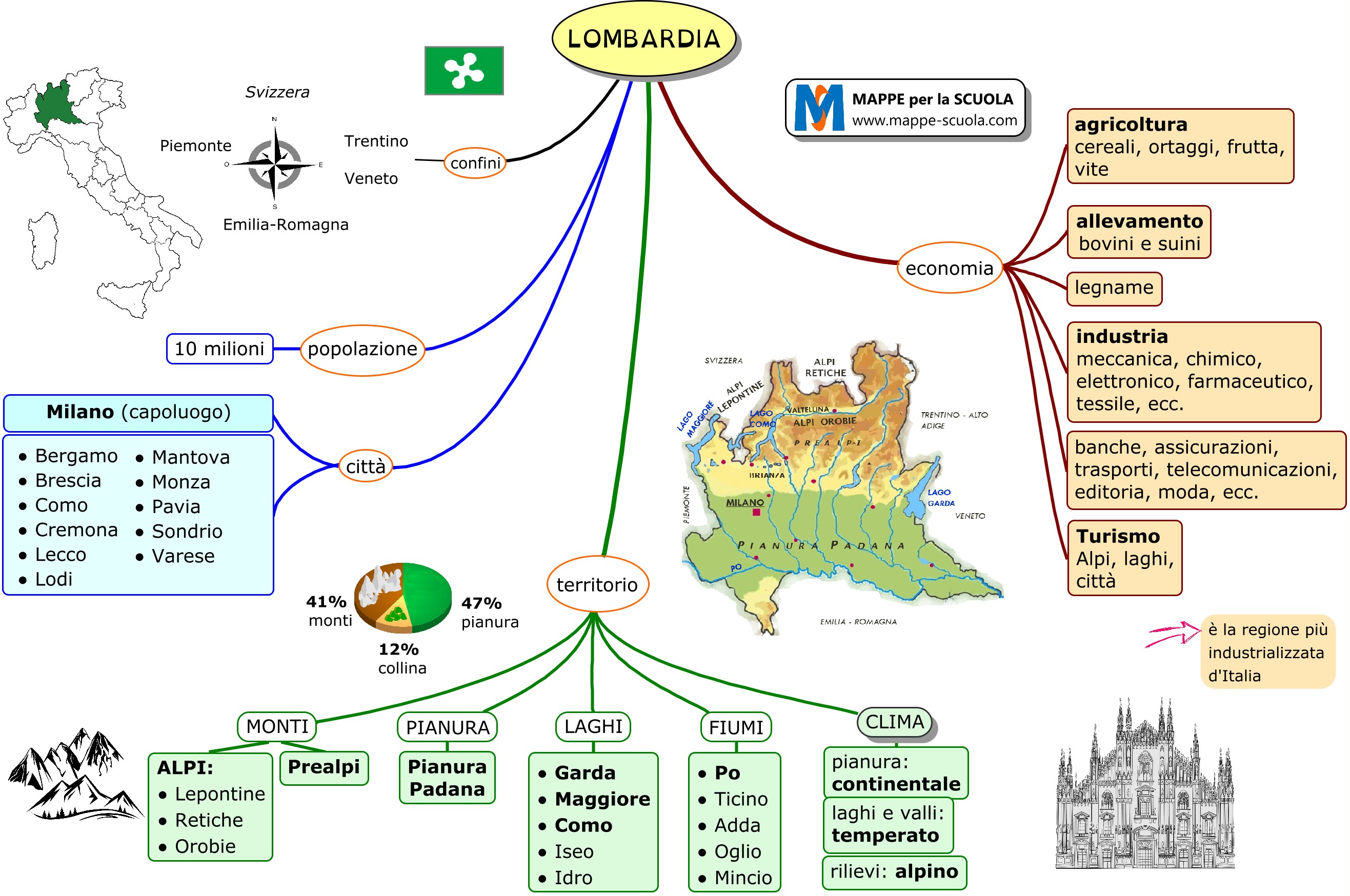 Mappa concettuale sulla REGIONE LOMBARDIA (geografia, scuola primaria).