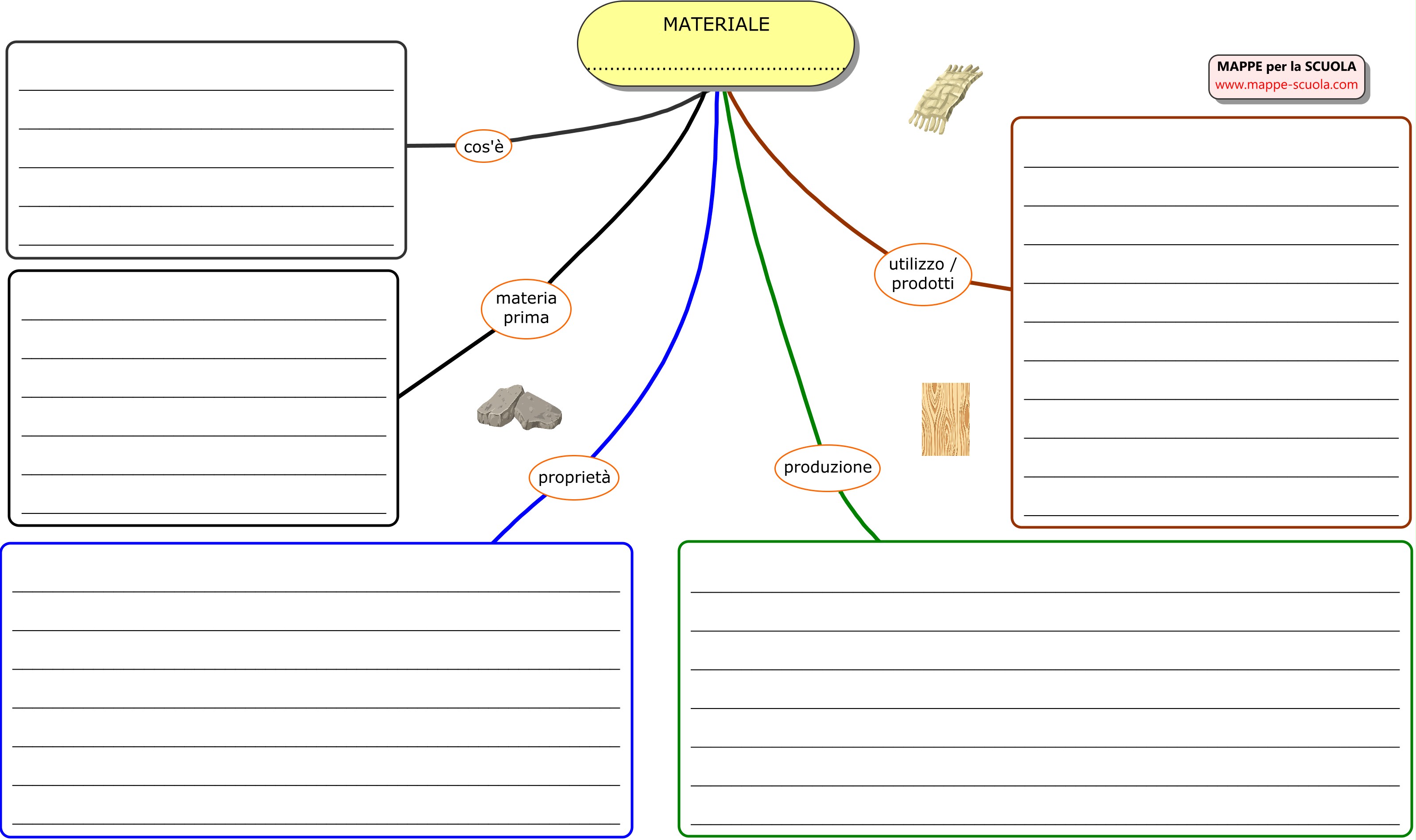 Mappa concettuale da riempire di contenuti sul "Materiale" (Tecnologia).