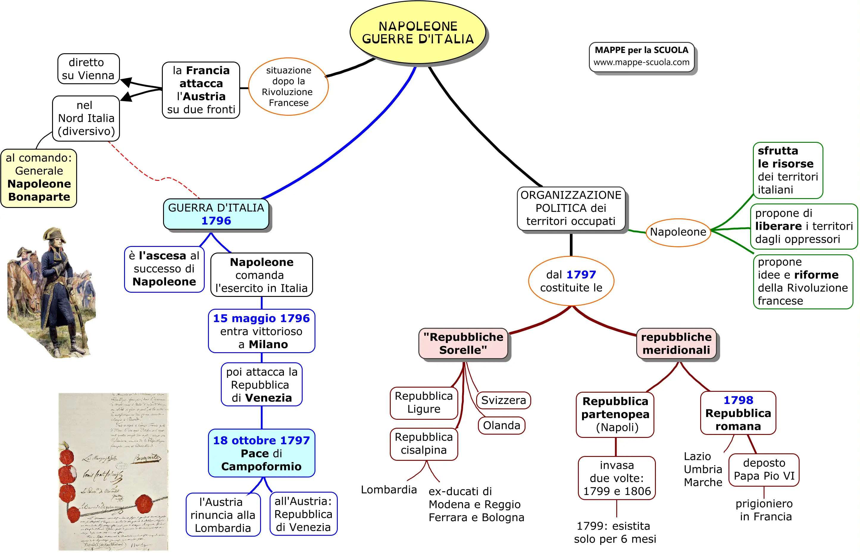 Mappe concettuali su NAPOLEONEMappa su Napoleone e la GUERRA D'ITALIA.L'ascesa al potere di Napoleone, le Repubbliche Sorelle (Repubblica Cisalpina e Repubblica Ligure...), le Repubbliche meridionali (Repubblica partenopea, Repubblica romana)...