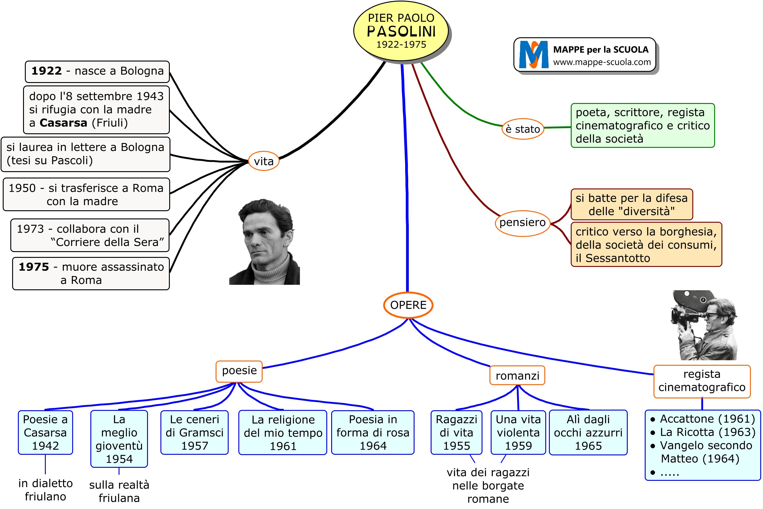 Mappa concettuale su Pier Paolo Pasolini (letteratura, scuola secondaria).
