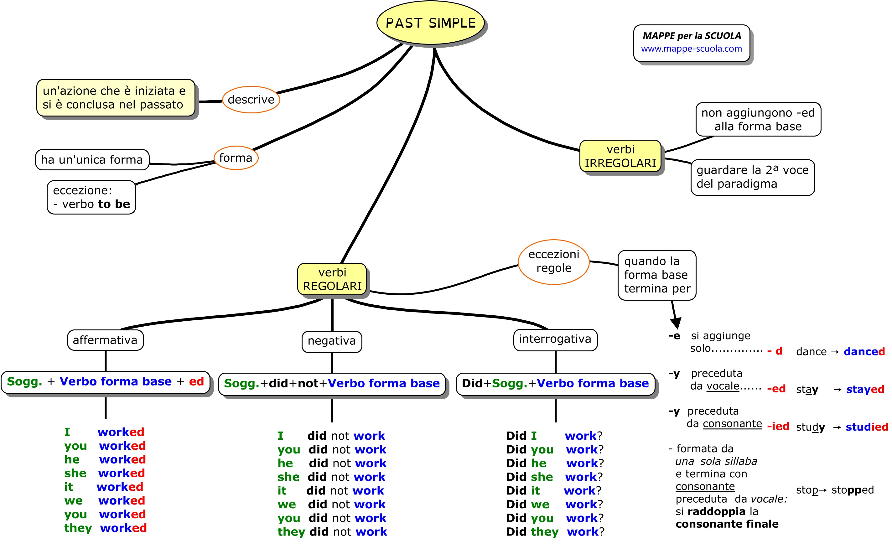 Mappa concettuale sul PAST SIMPLE (Inglese).
