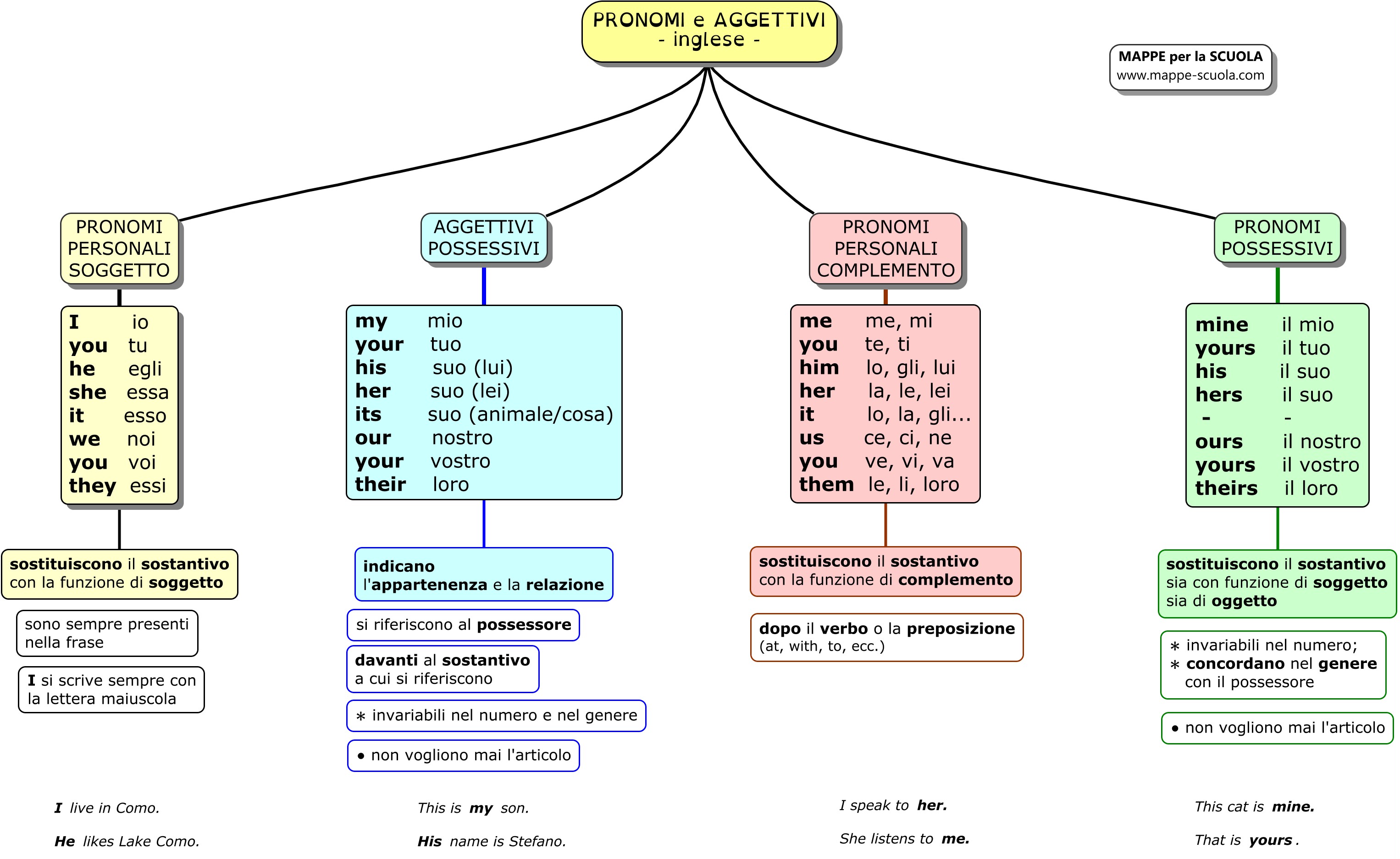 Mappa concettuale dei PRONOMI E AGGETTIVI INGLESI.