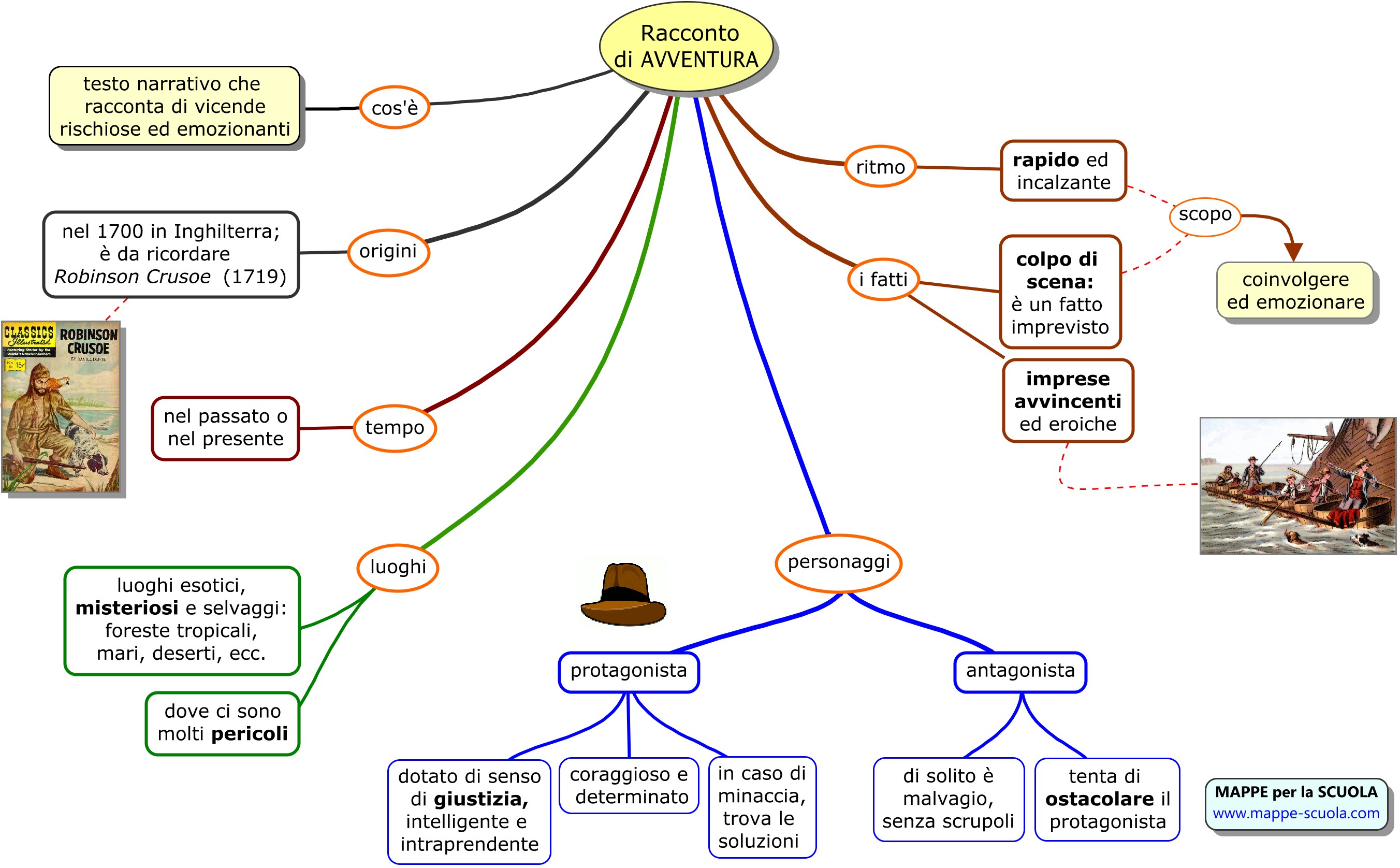 Mappa concettuale sul RACCONTO D'AVVENTURA.Il racconto di avventura è un testo narrativo che racconta di vicende rischiose e d emozionanti..