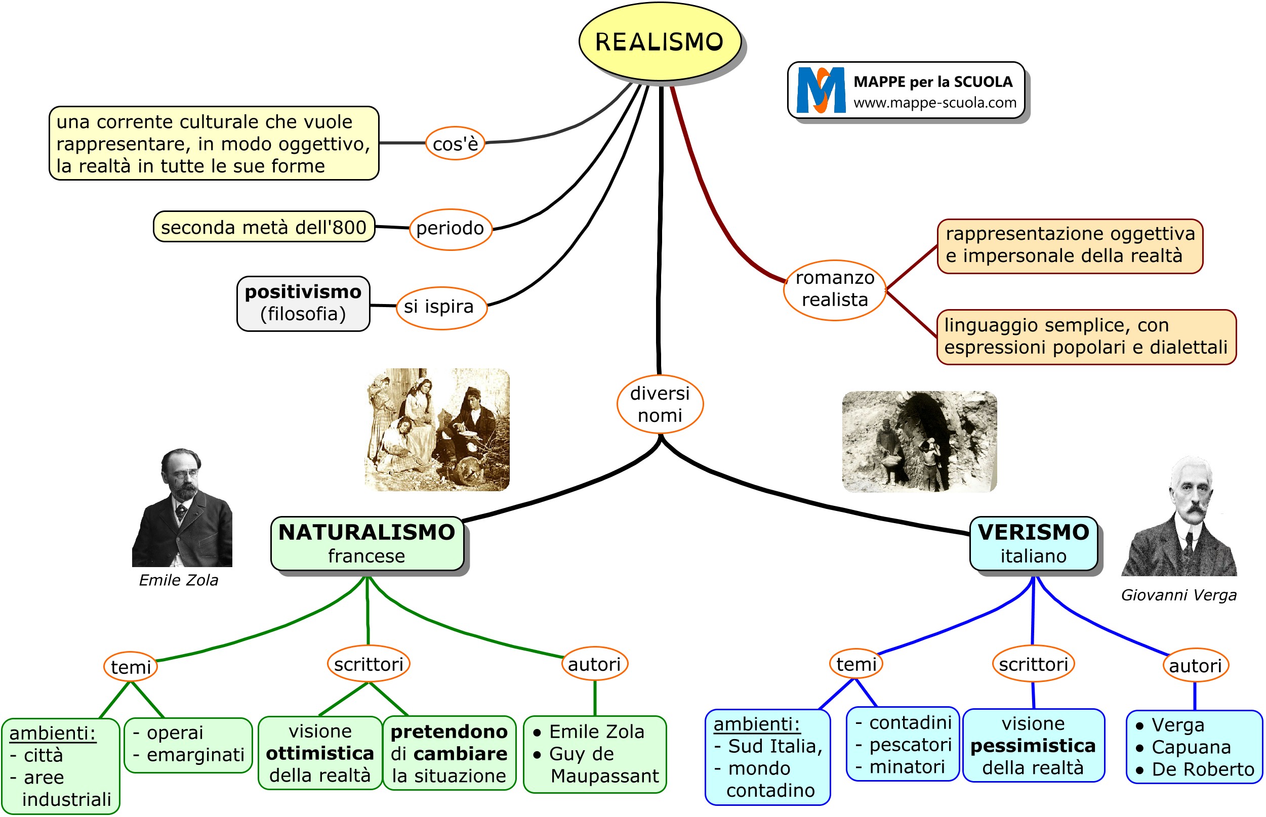 E' dal Realismo che nascono i movimenti culturali del VERISMO nella letteratura italiana (Giovanni Verga) e del NATURALISMO nella letteratura francese (Emile Zola). Queste correnti culturali hanno come modello il positivismo (filosofia).
