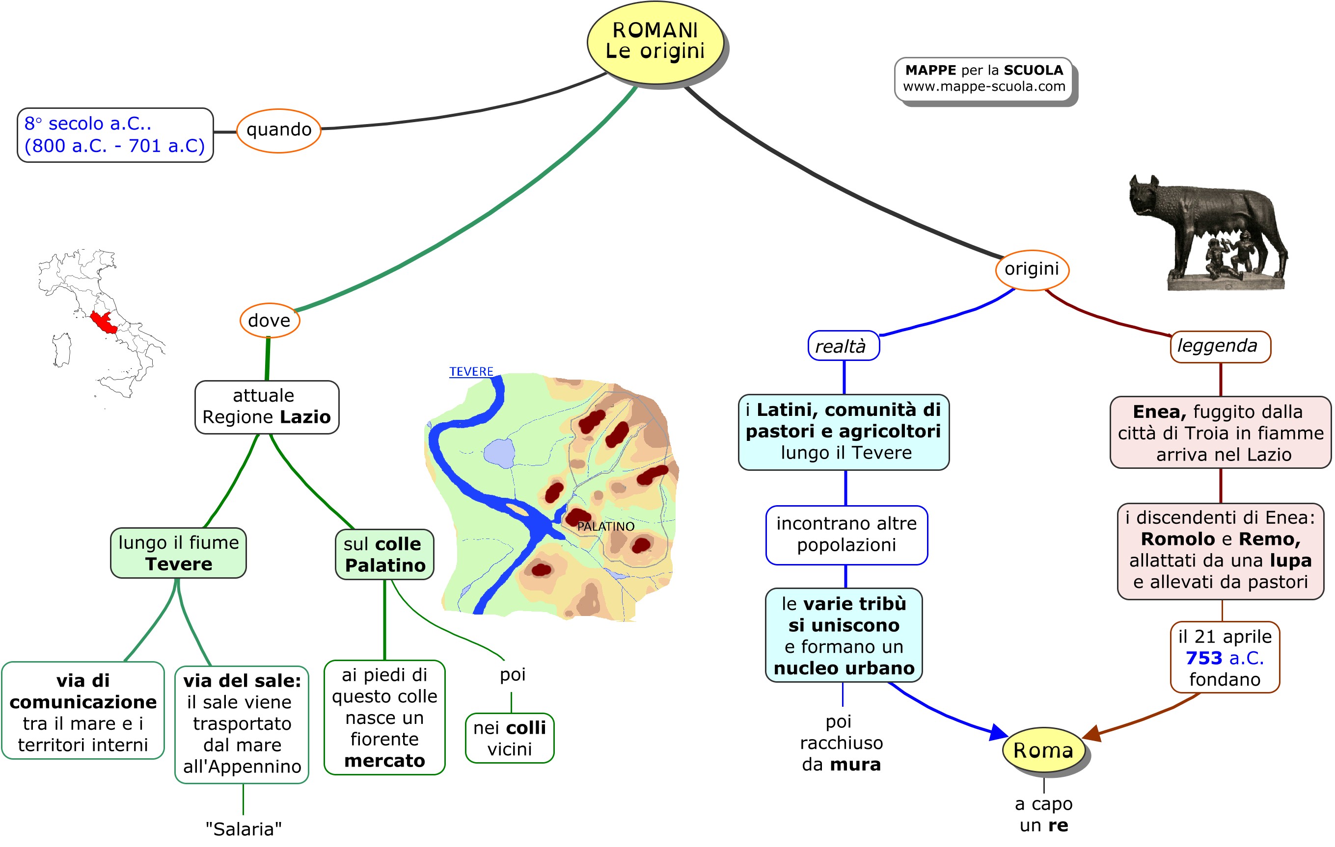 Mappa concettuale sulle origini della CIVILTÀ DEI ROMANI.