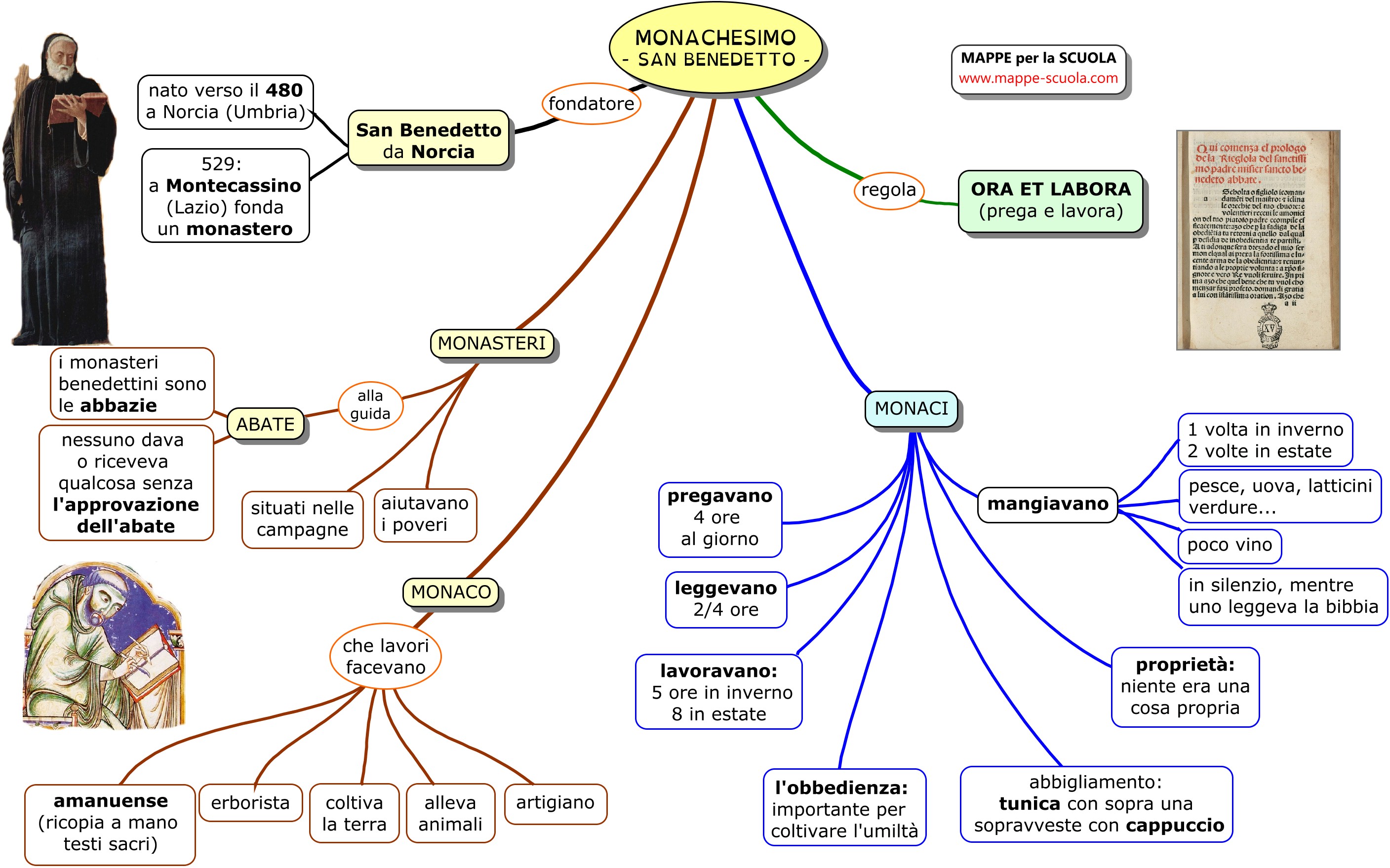 Mappa concettuale su SAN BENEDETTO DA NORCIA. Il monachesimo di San Benedetto.