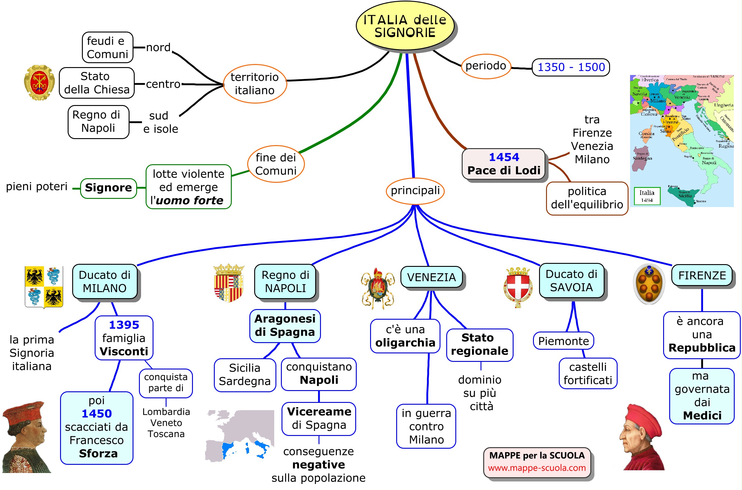 Mappa concettuale sulle principali Signorie nel territorio italiano.