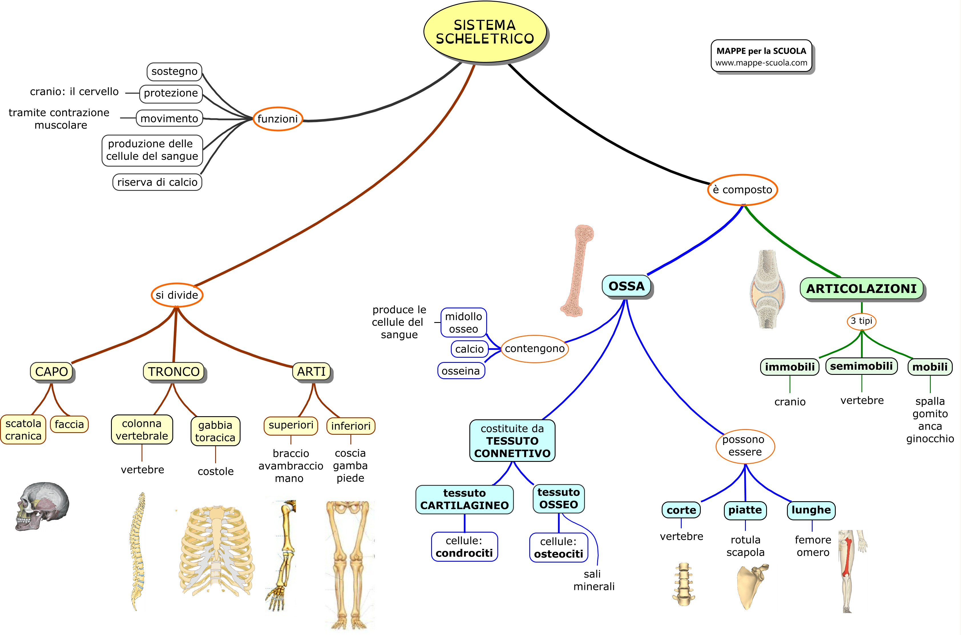 Mappa concettuale del SISTEMA SCHELETRICO.