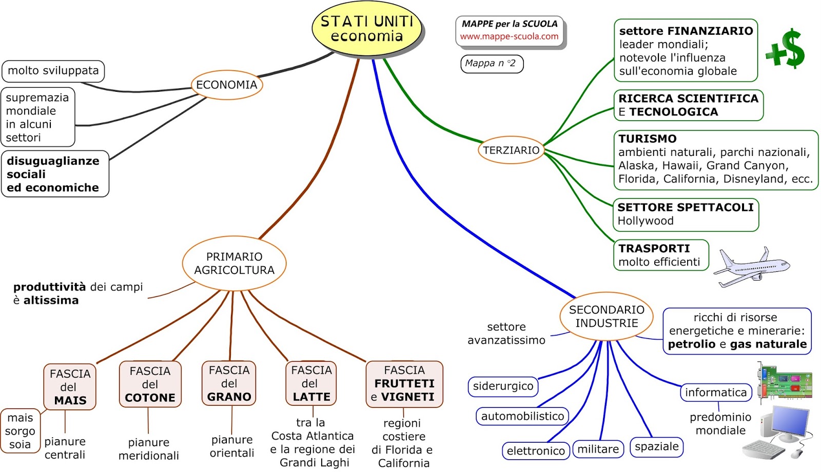 In questa mappa concettuale viene descritta l'economia degli Stati Uniti d'America.