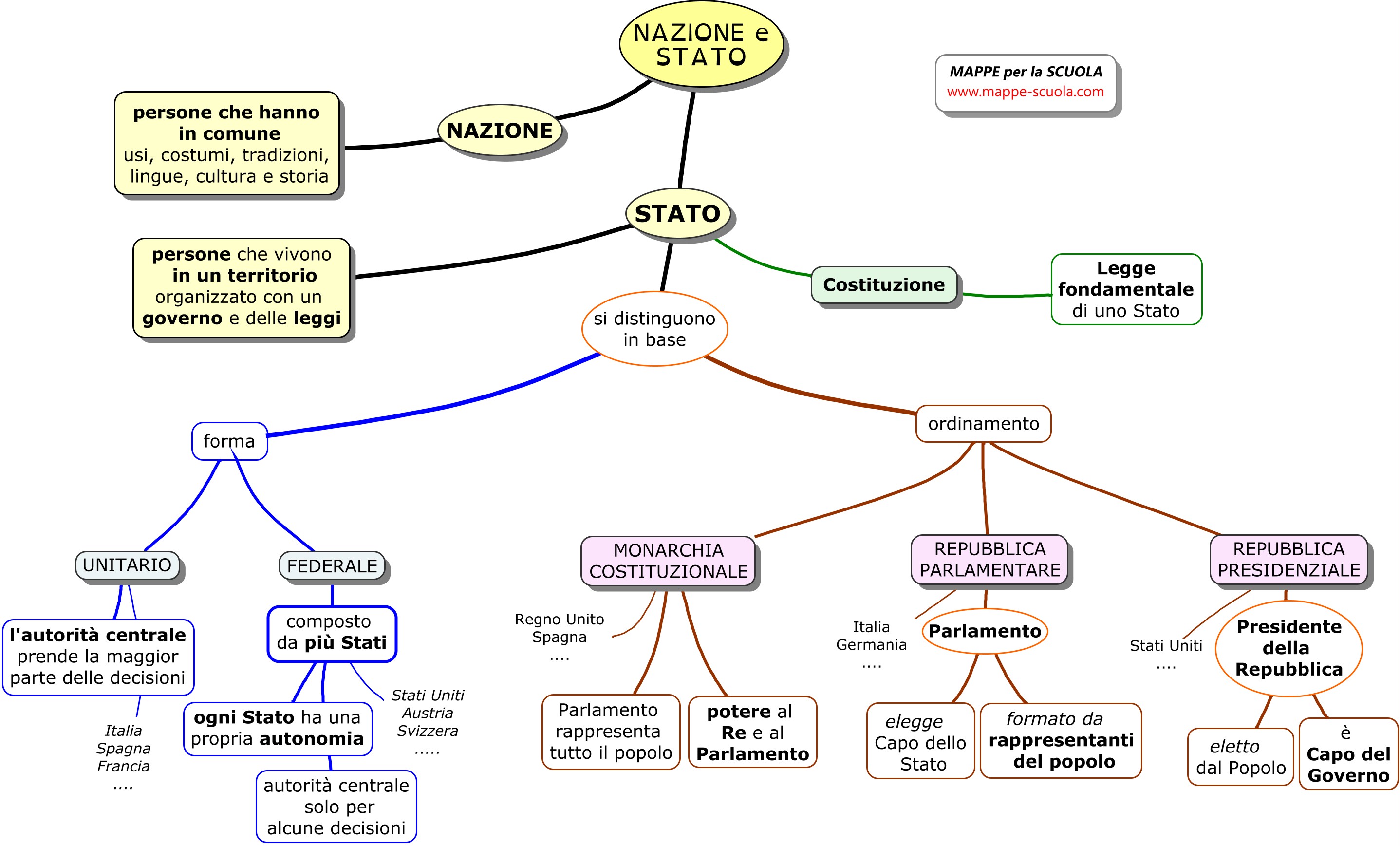 Lo Stato si distingue in base alla forma (unitario o federale) e all'ordinamento (Monarchia costituzionale, Repubblica parlamentare o Repubblica presidenziale)...