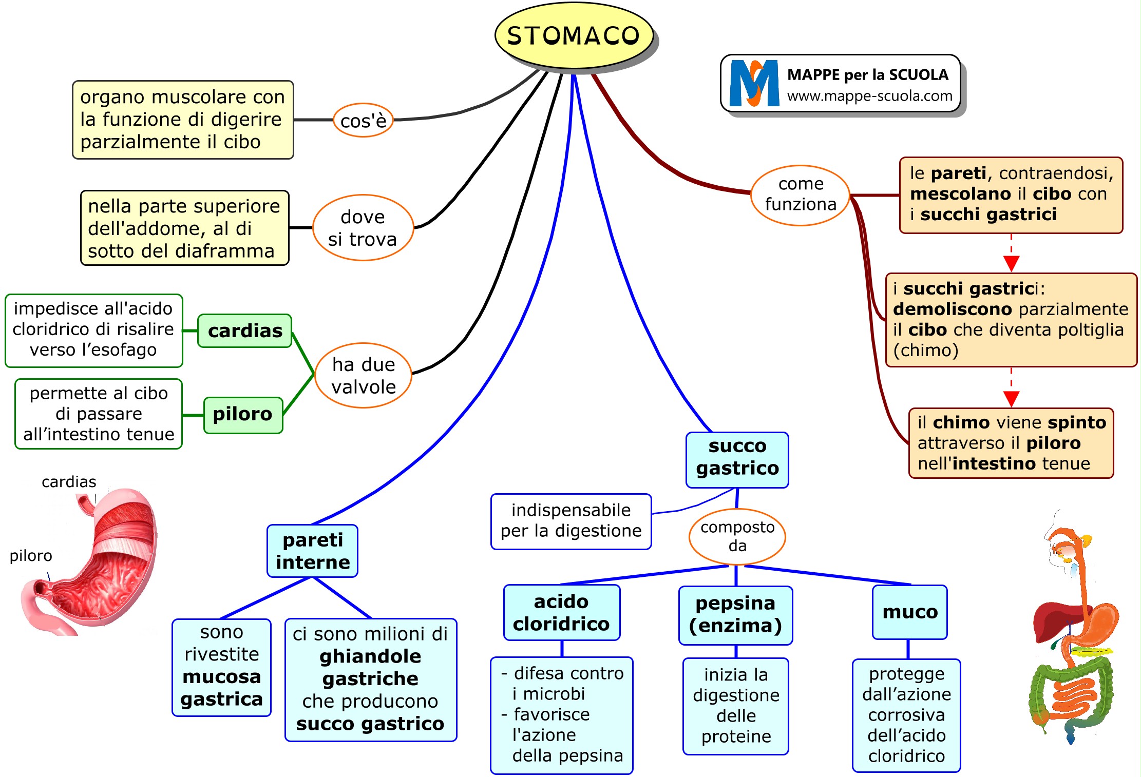 Mappa concettuale sullo STOMACO (scienze). Lo stomaco è un organo muscolare che fa parte dell'apparato digerente. La funzione dello stomaco è quella di digerire parzialmente il cibo.