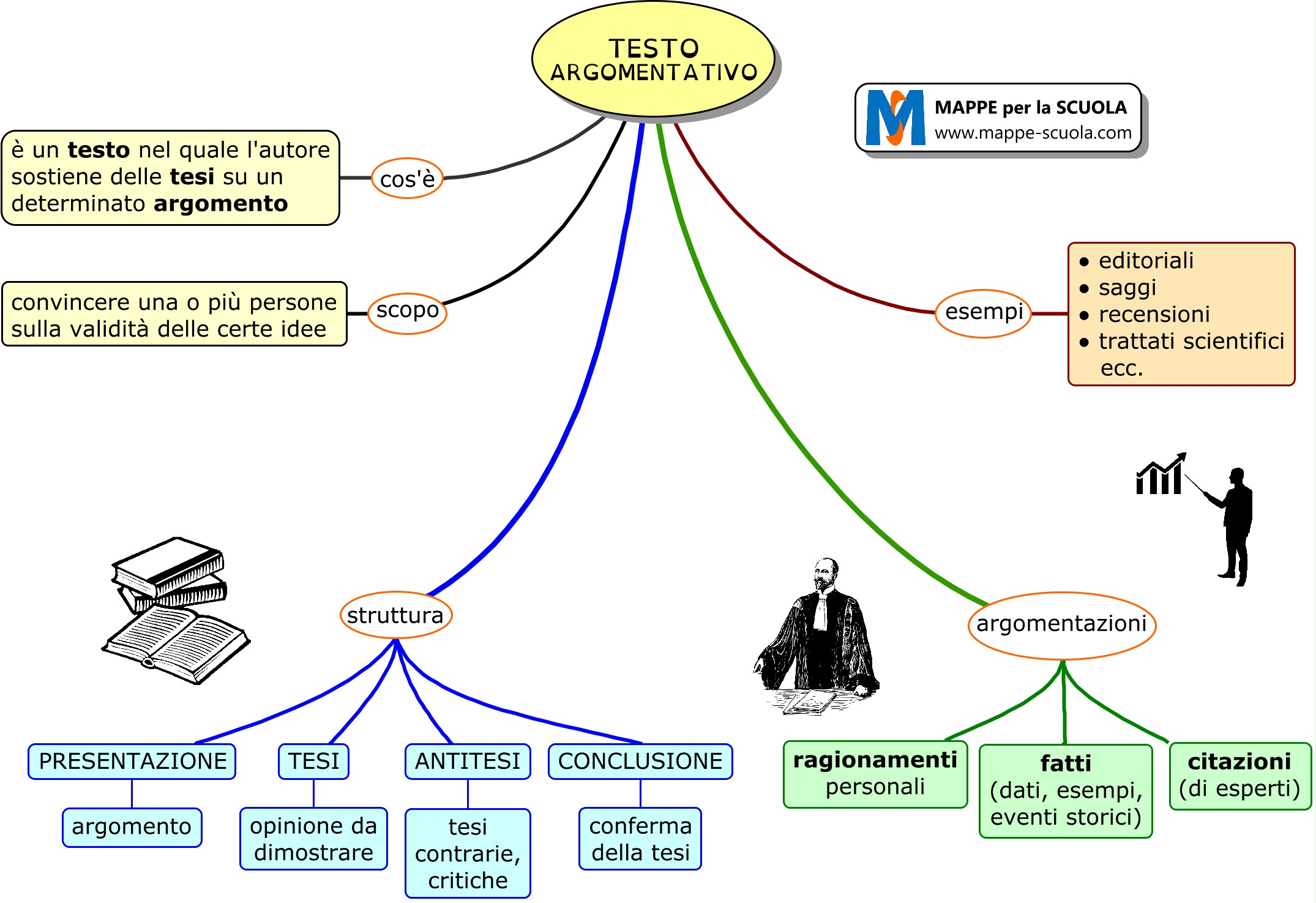 Nello schema qui sotto: la struttura e le argomentazioni di un testo argomentativo.